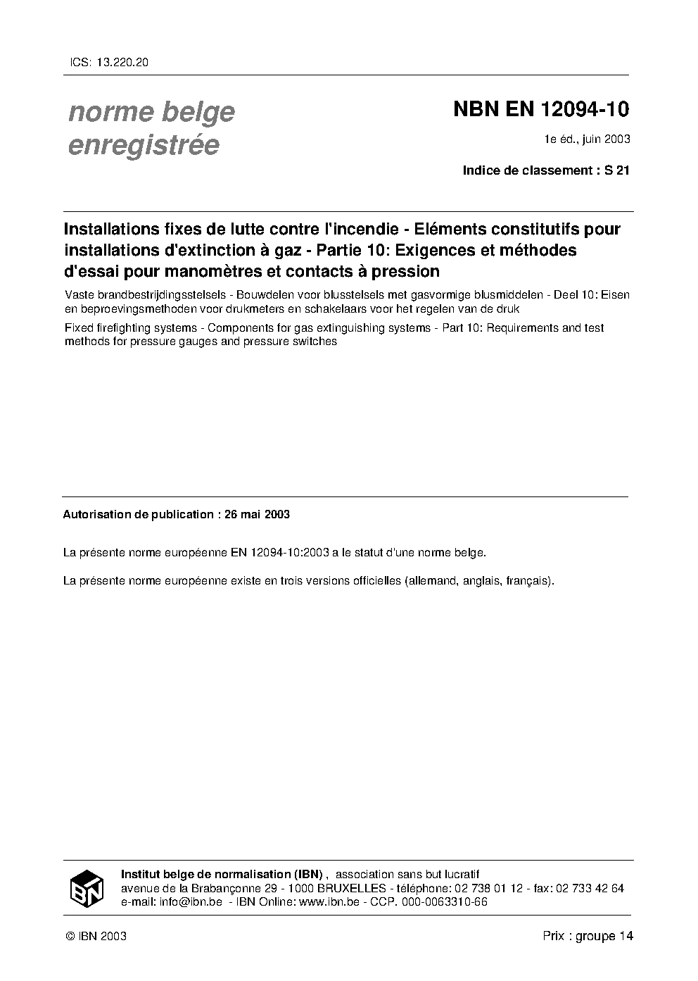 | Publisher | Bureau de Normalisation Belge (NBN) |