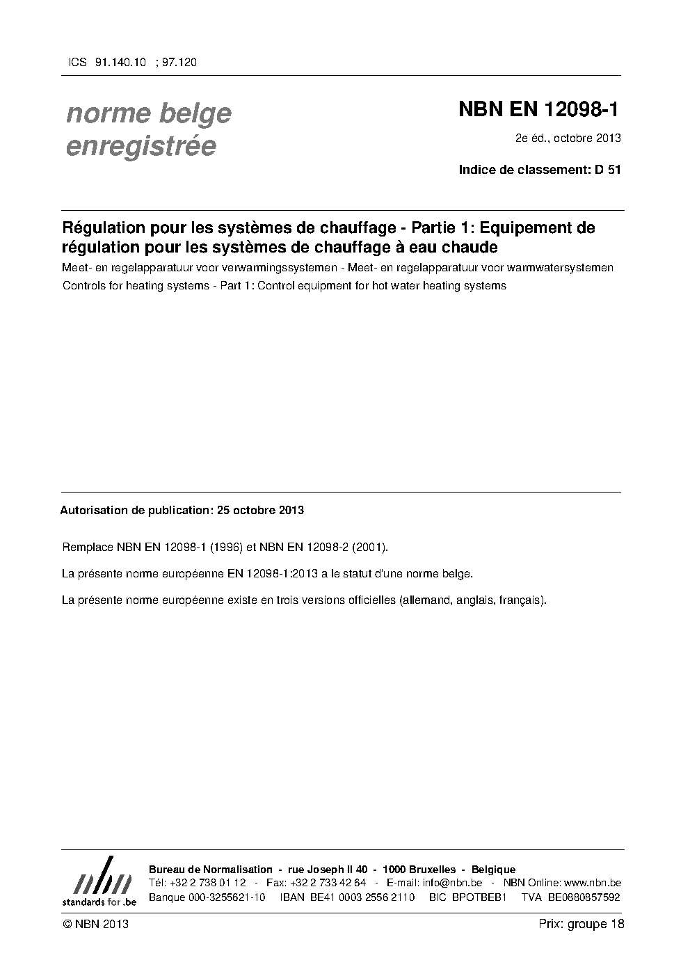 | Publisher | Bureau de Normalisation Belge (NBN) |
