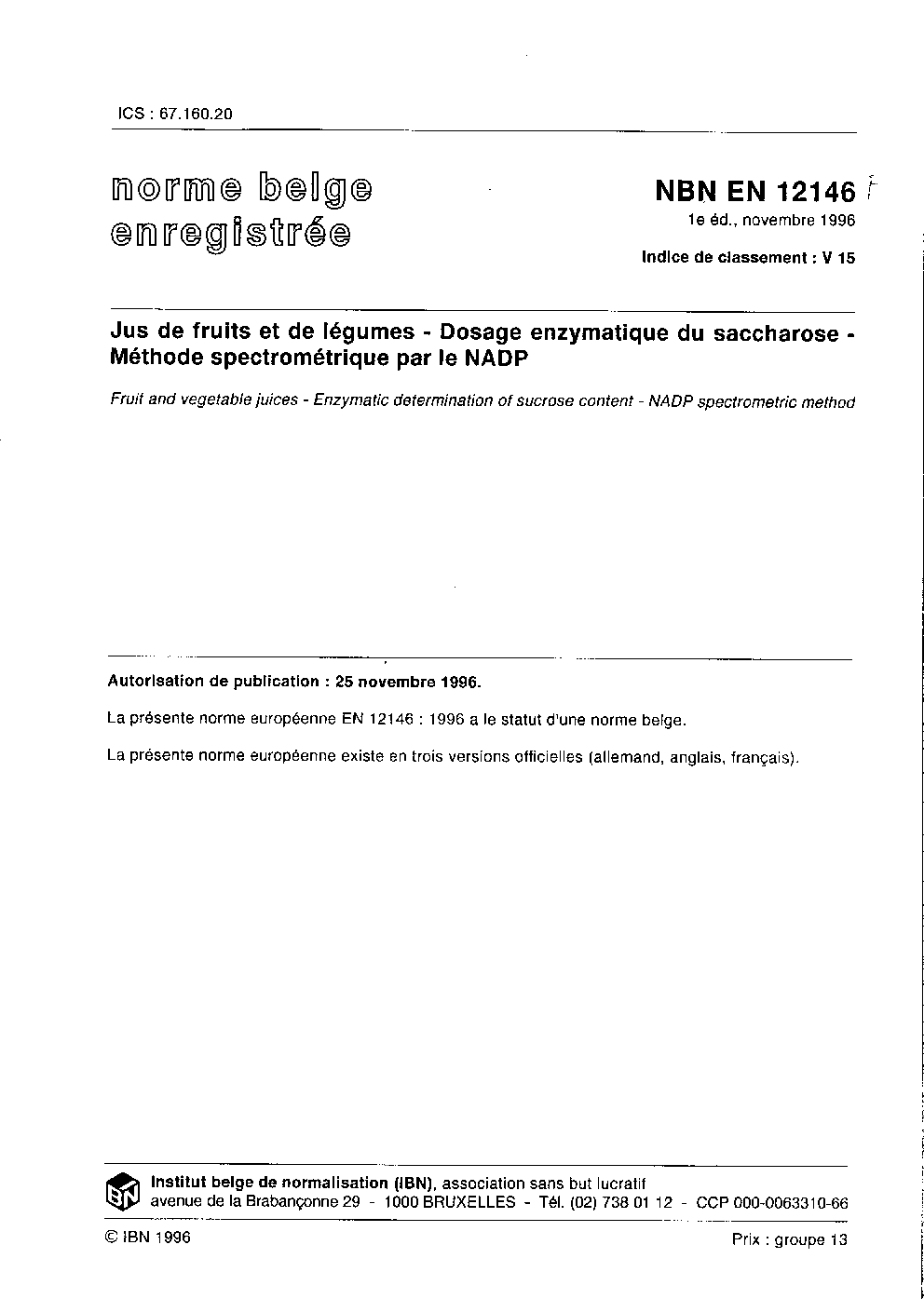 | Publisher | Bureau de Normalisation Belge (NBN) |