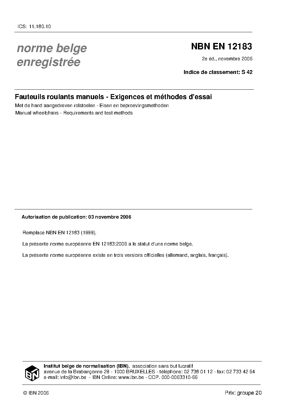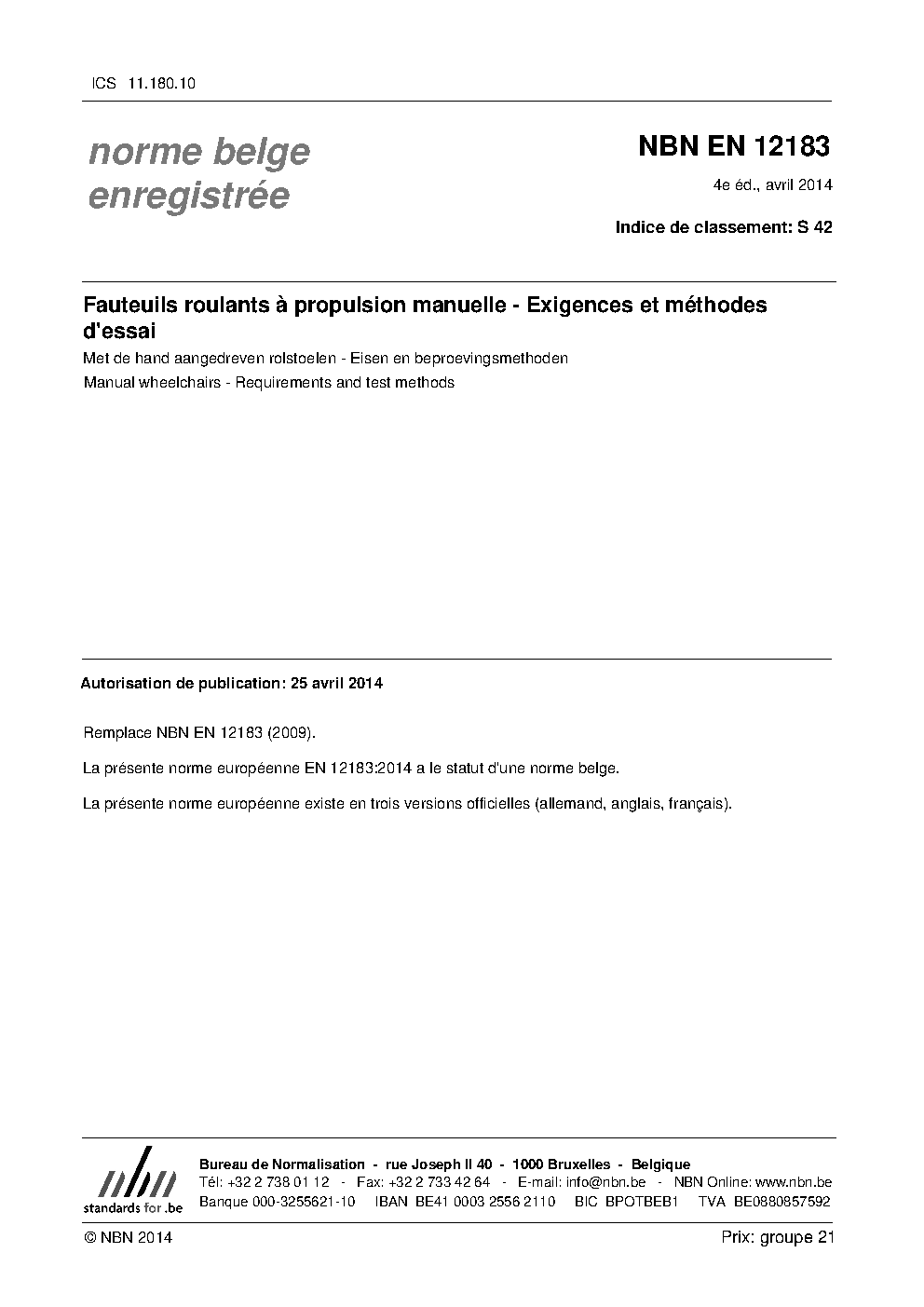 | Publisher | Bureau de Normalisation Belge (NBN) |