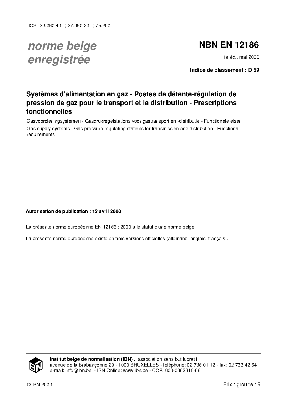 | Publisher | Bureau de Normalisation Belge (NBN) |