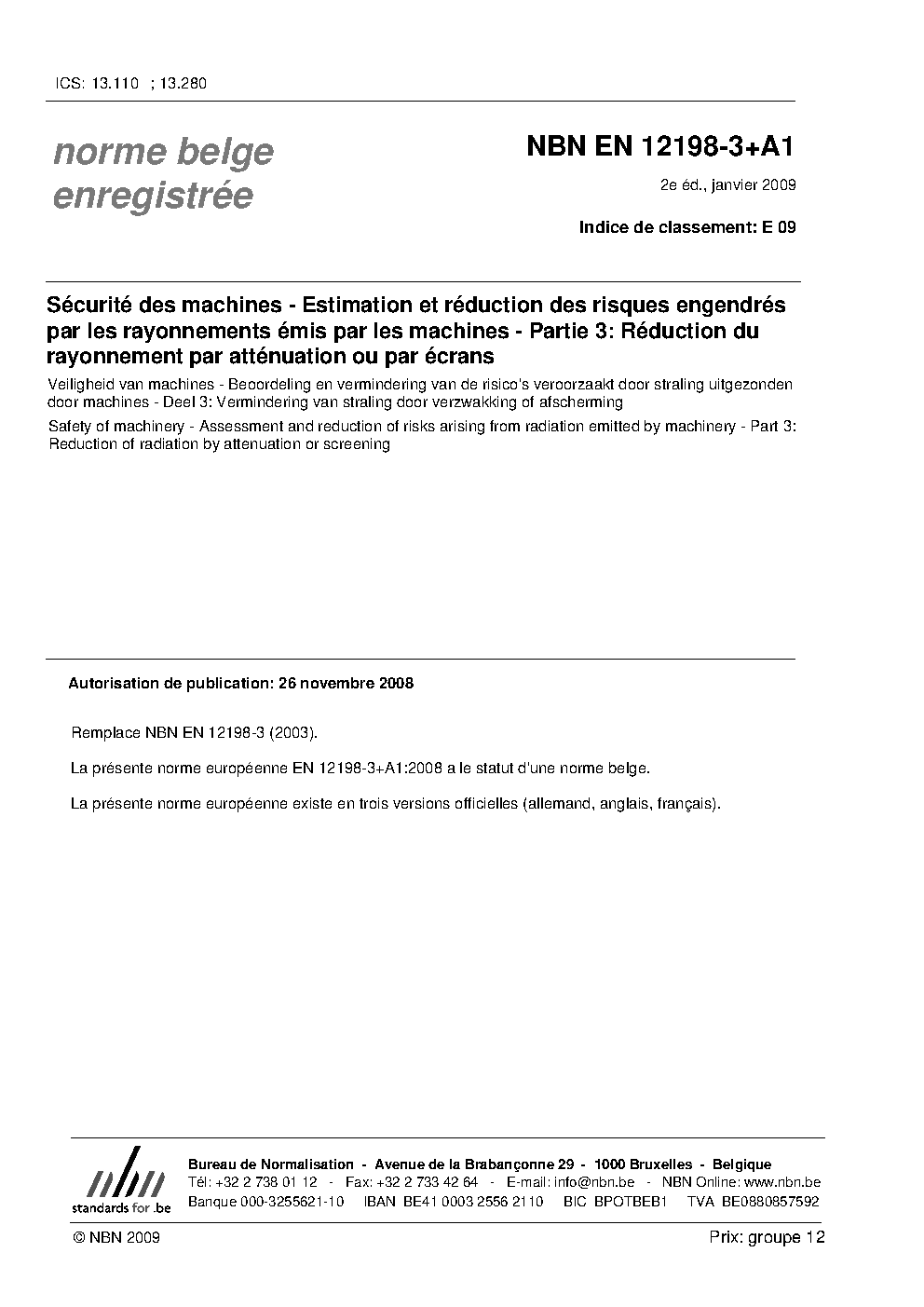 | Publisher | Bureau de Normalisation Belge (NBN) |