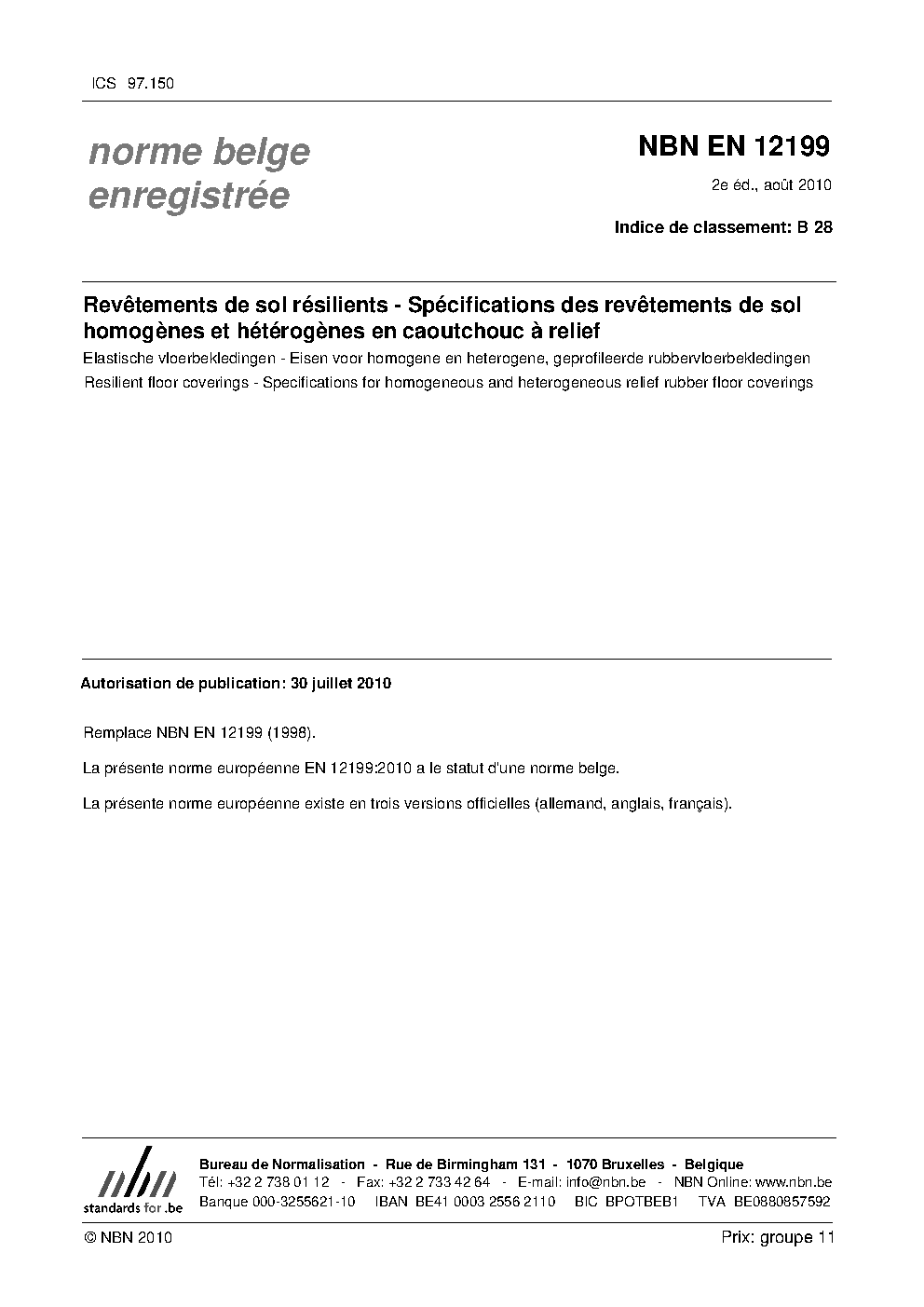 | Publisher | Bureau de Normalisation Belge (NBN) |