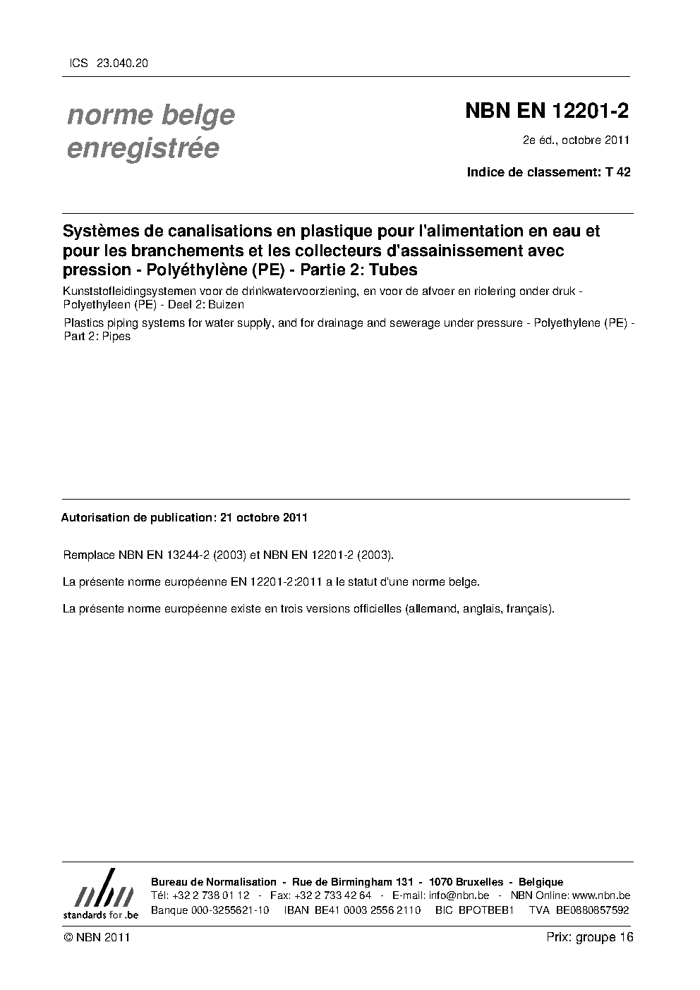 | Publisher | Bureau de Normalisation Belge (NBN) |