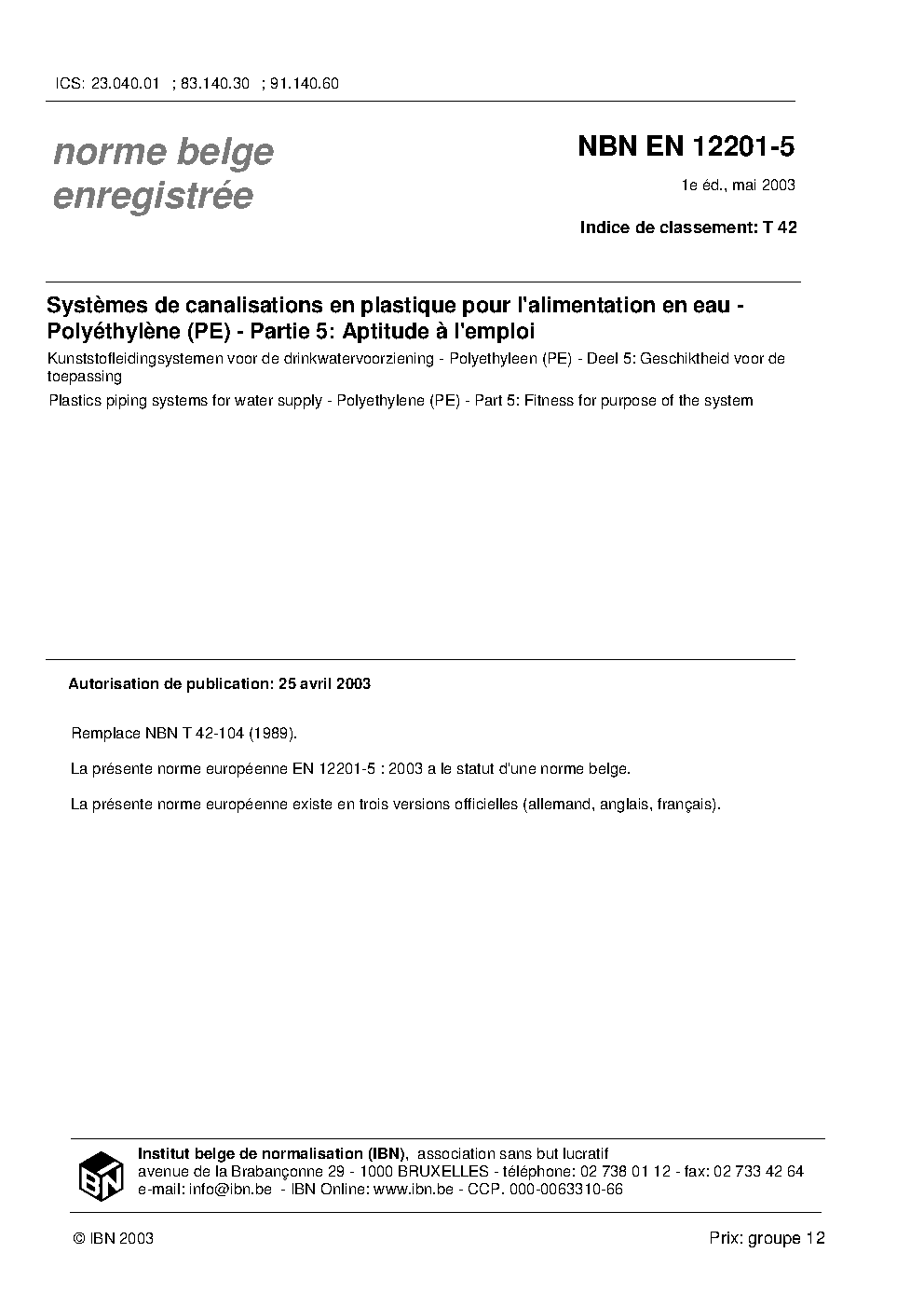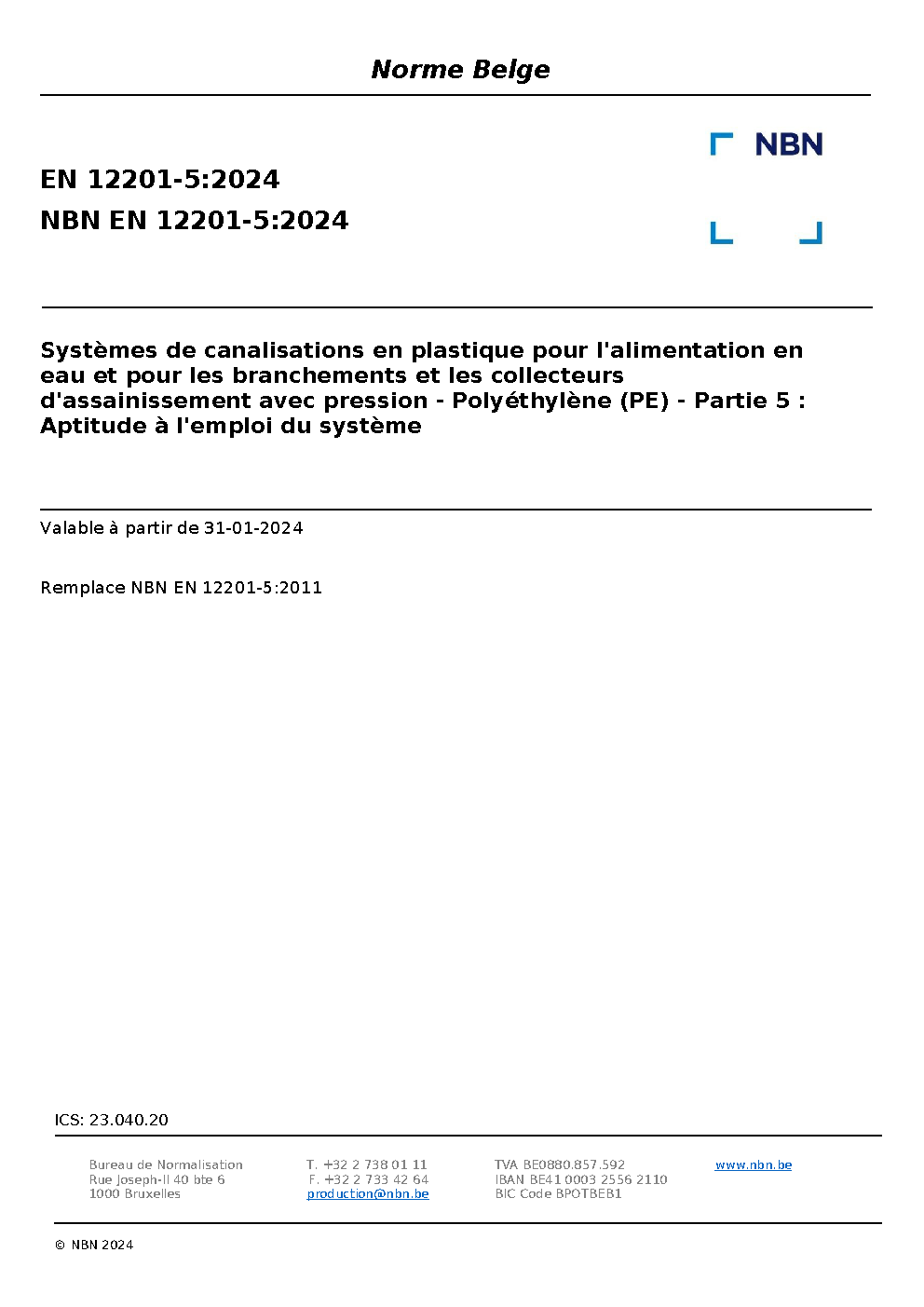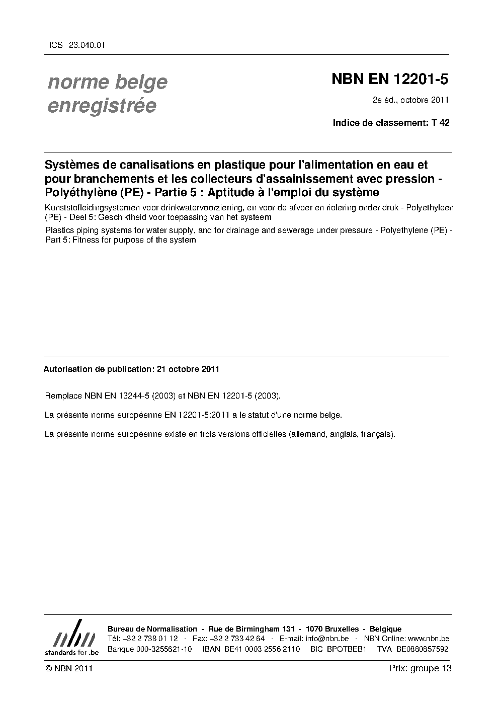 | Publisher | Bureau de Normalisation Belge (NBN) |