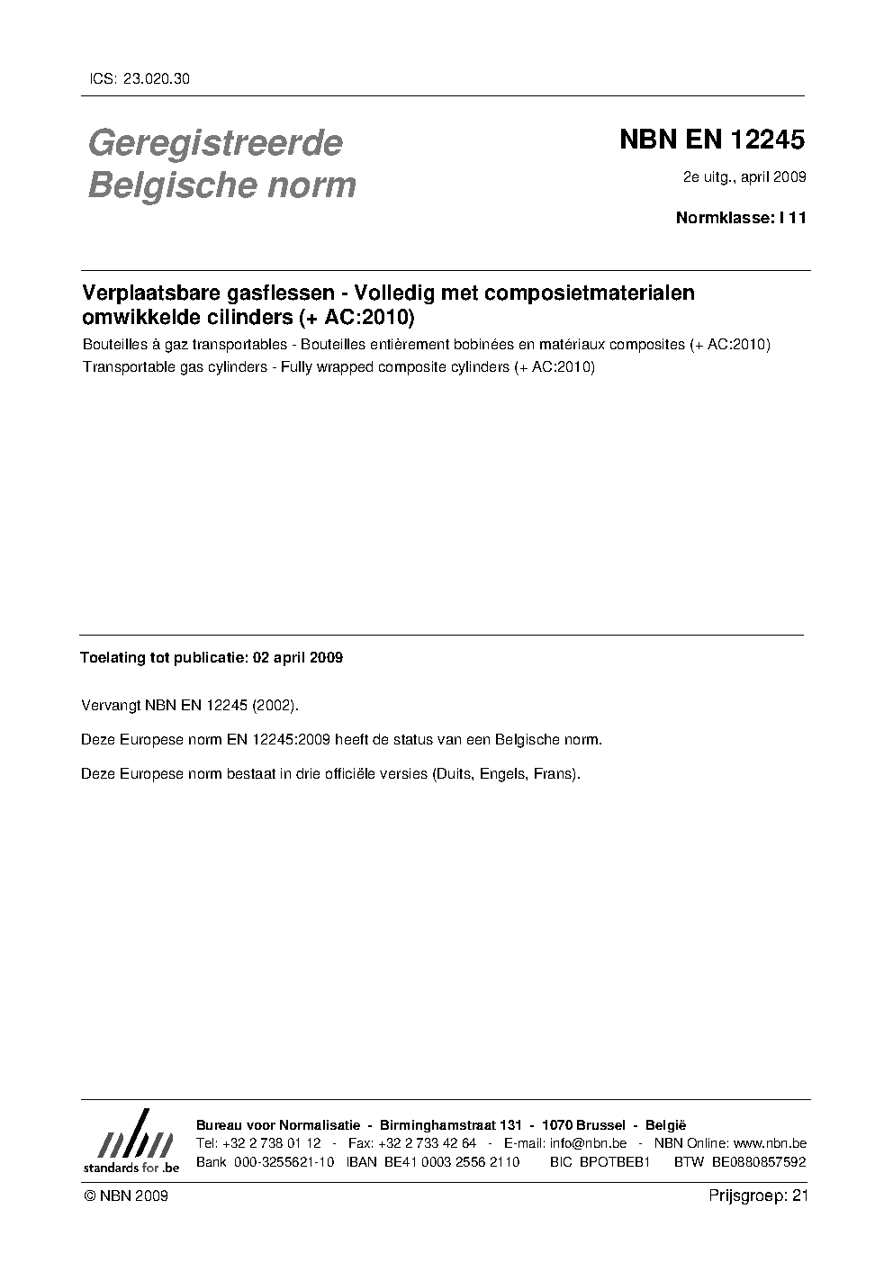 | Publisher | Bureau de Normalisation Belge (NBN) |