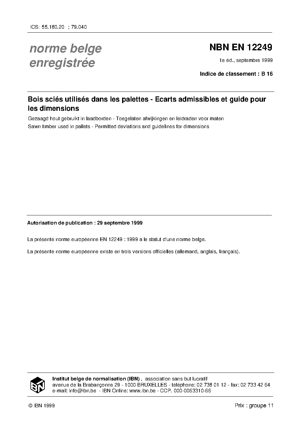 | Publisher | Bureau de Normalisation Belge (NBN) |