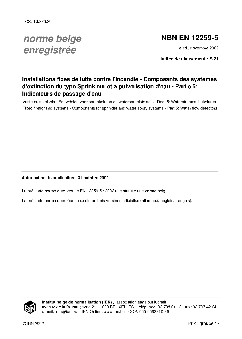 | Publisher | Bureau de Normalisation Belge (NBN) |