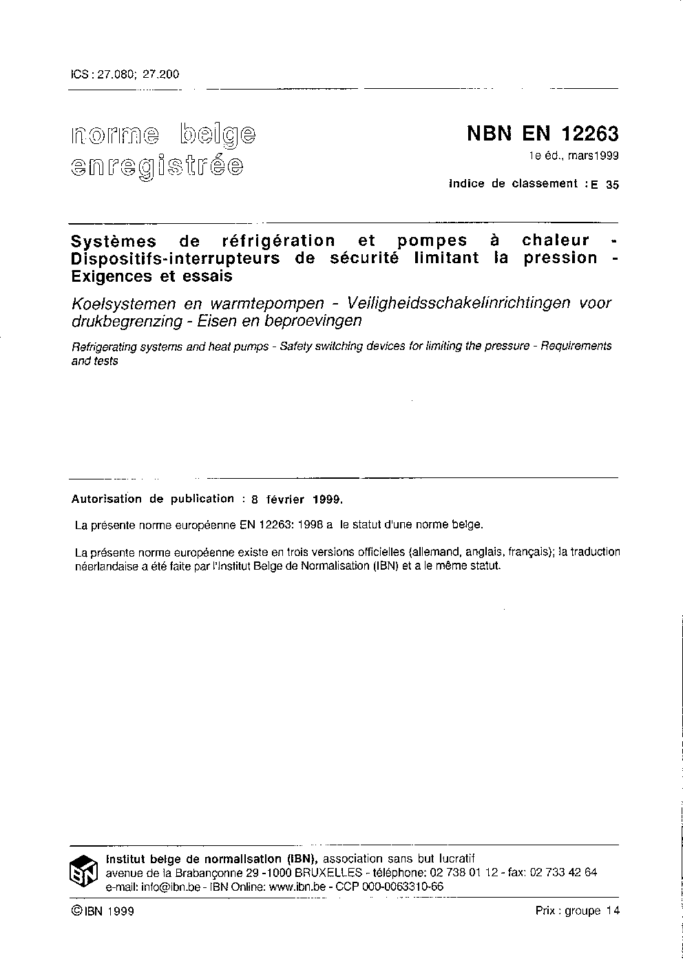 NBN EN 12263:1999