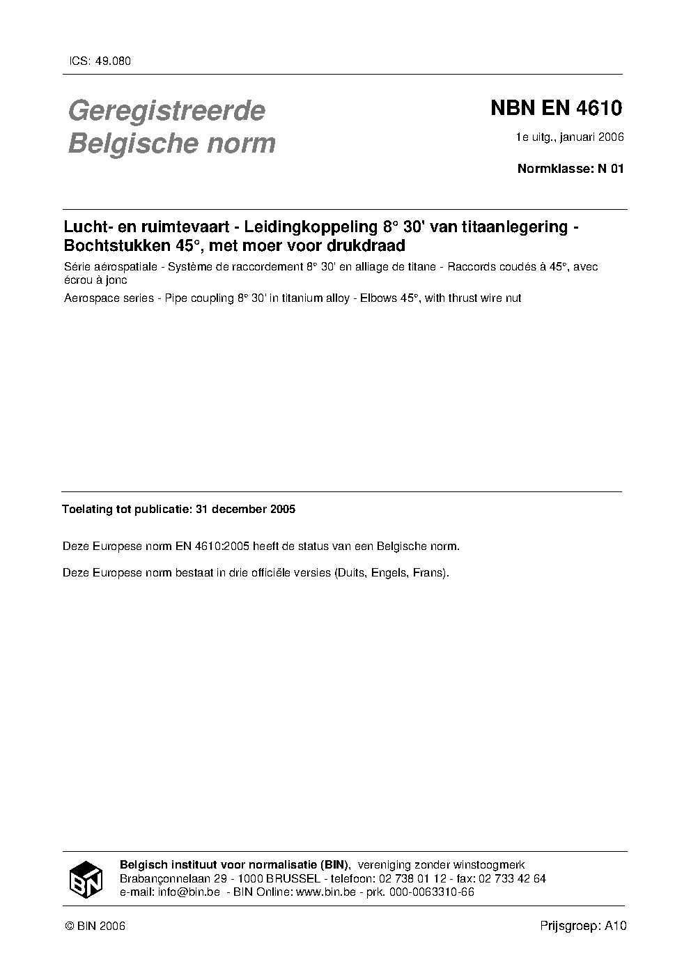 | Publisher | Bureau de Normalisation Belge (NBN) |