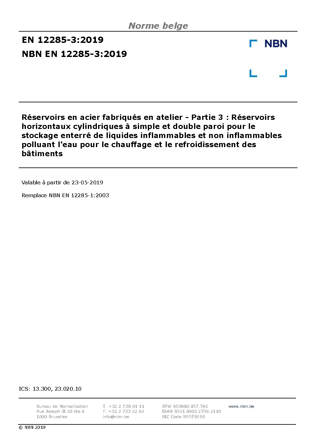 | Publisher | Bureau de Normalisation Belge (NBN) |