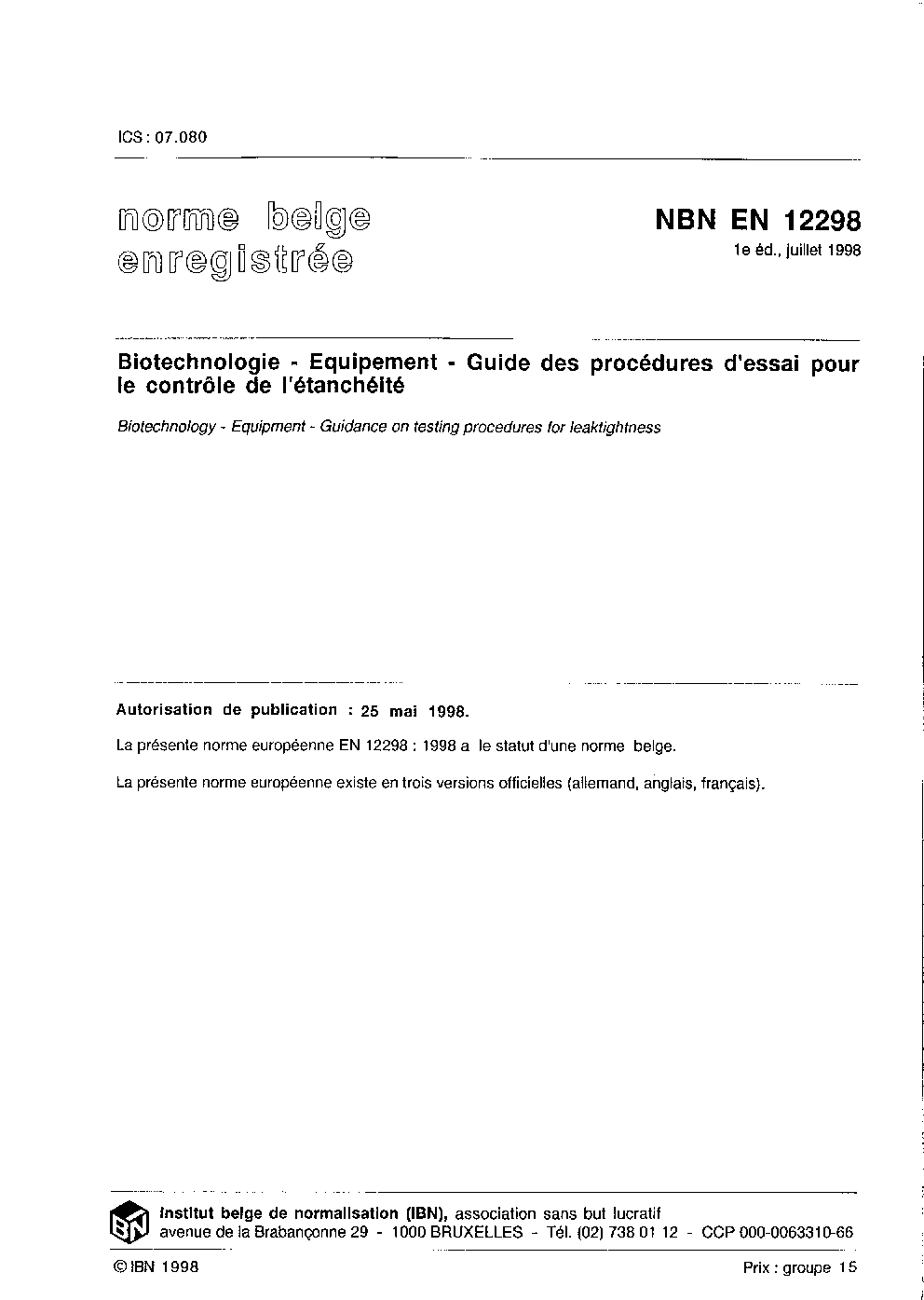 | Publisher | Bureau de Normalisation Belge (NBN) |