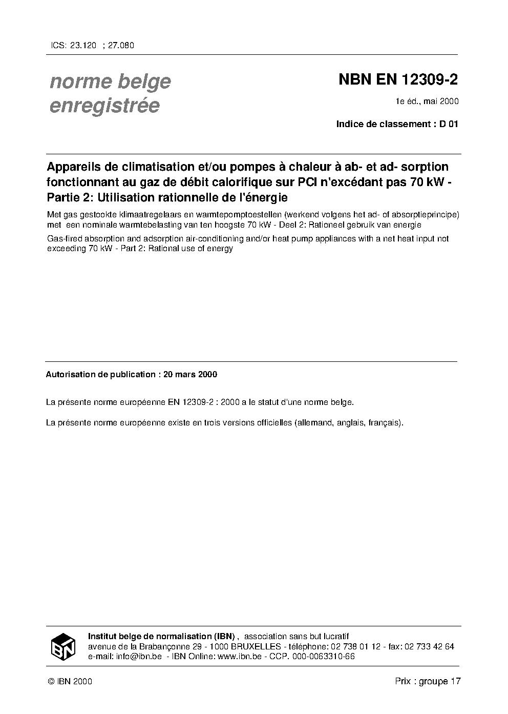 NBN EN 12309-2:2000