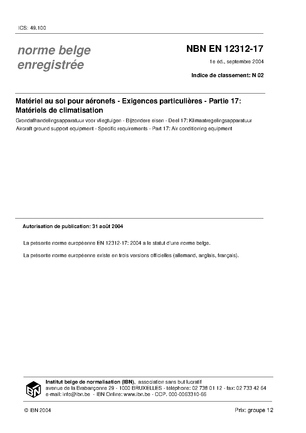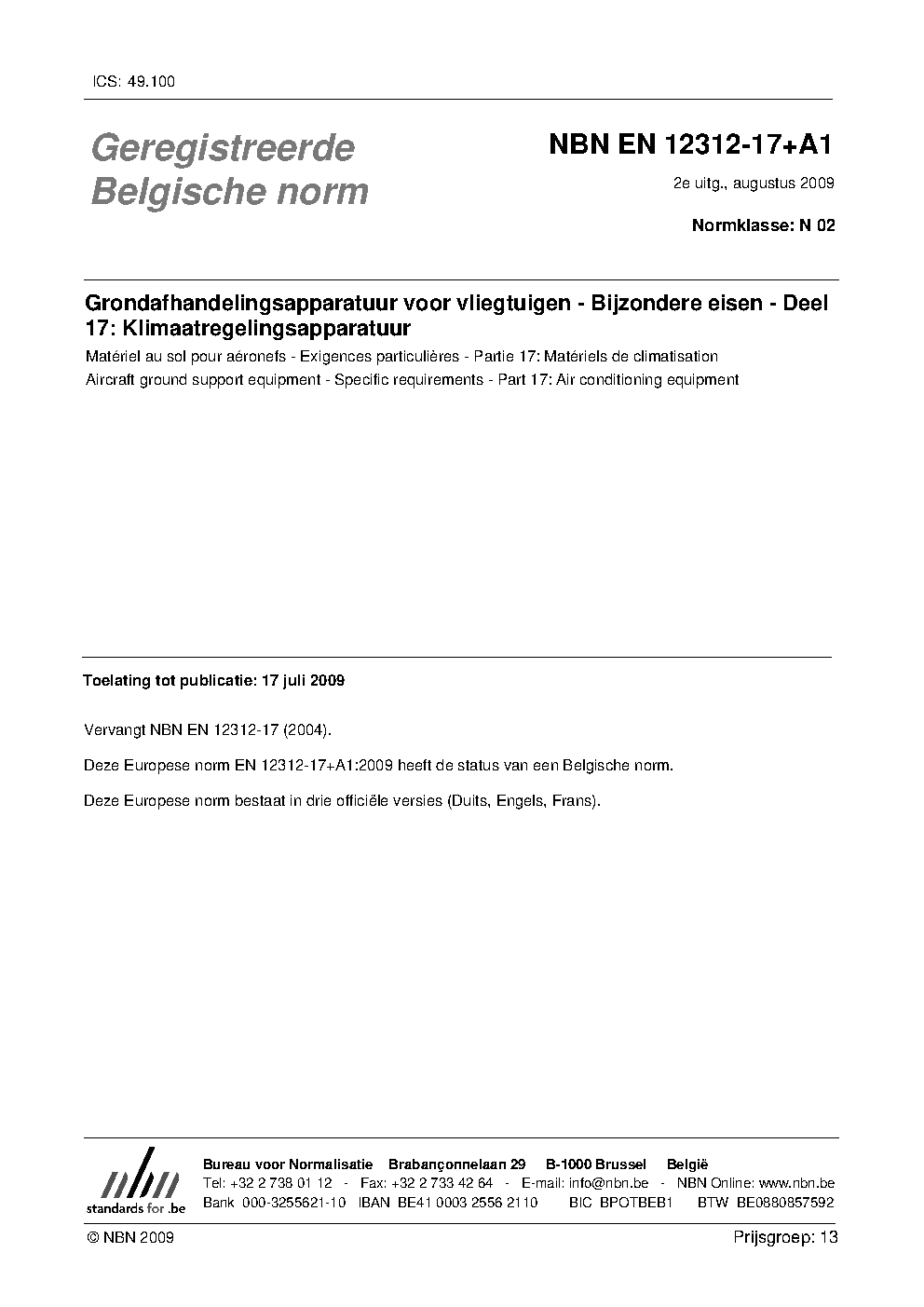 | Publisher | Bureau de Normalisation Belge (NBN) |