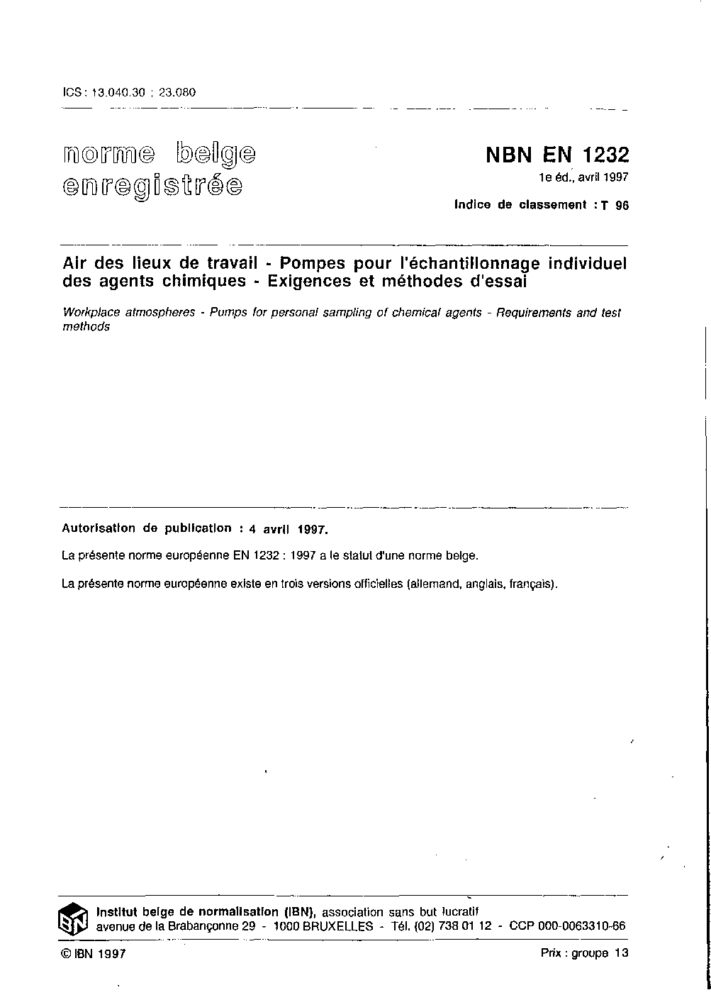 | Publisher | Bureau de Normalisation Belge (NBN) |