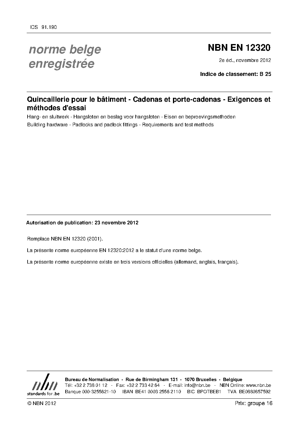 | Publisher | Bureau de Normalisation Belge (NBN) |