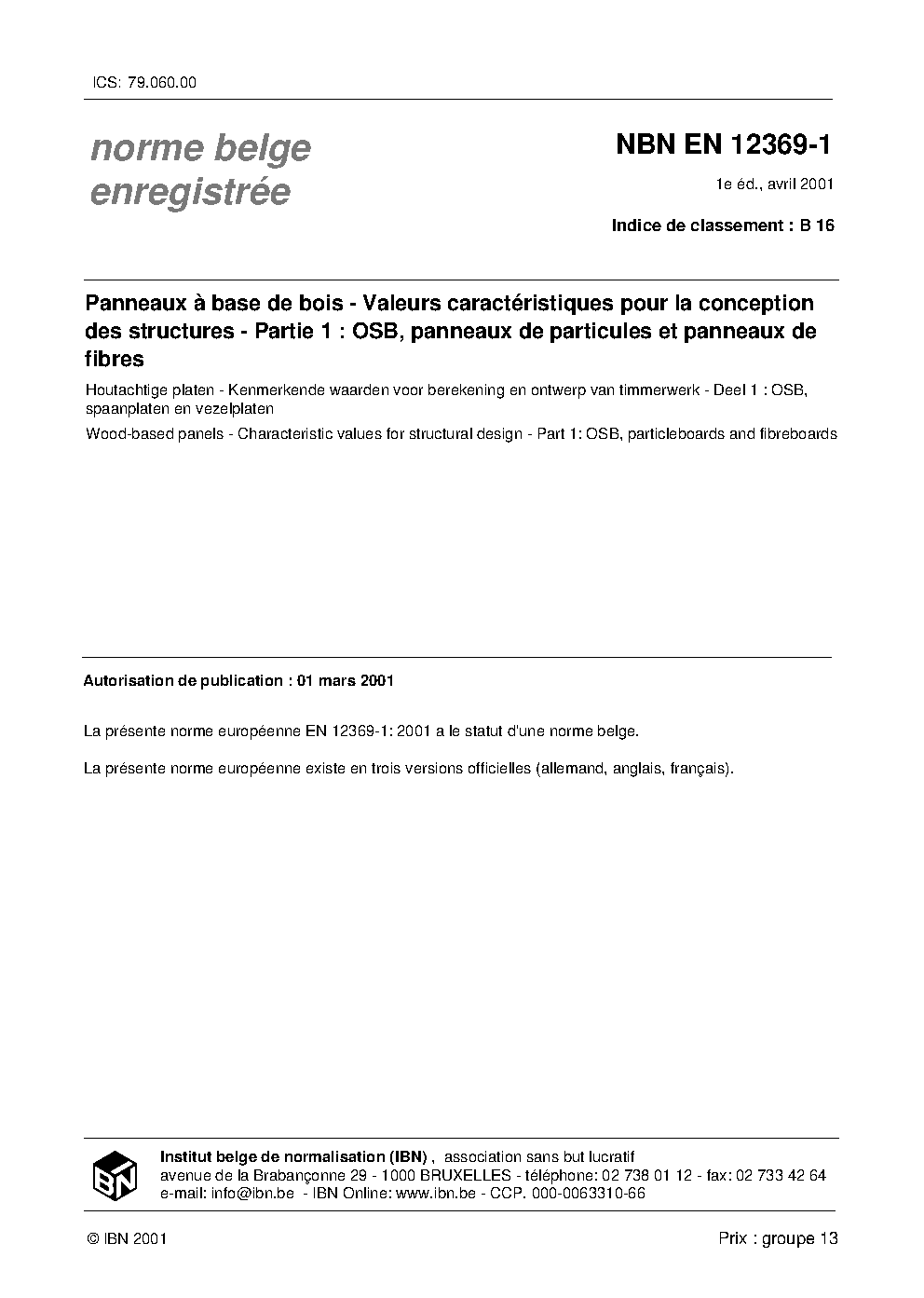 | Publisher | Bureau de Normalisation Belge (NBN) |