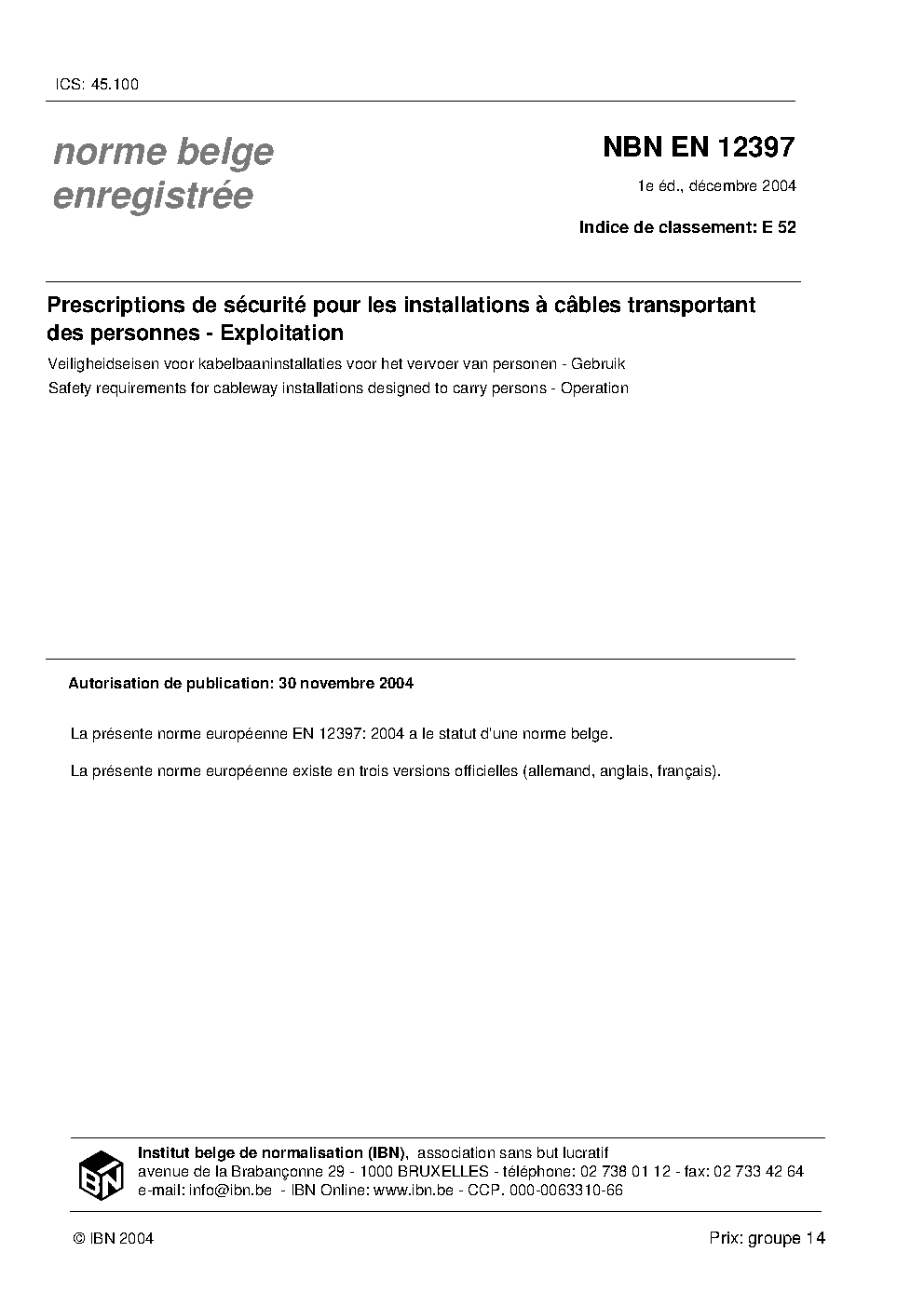 | Publisher | Bureau de Normalisation Belge (NBN) |
