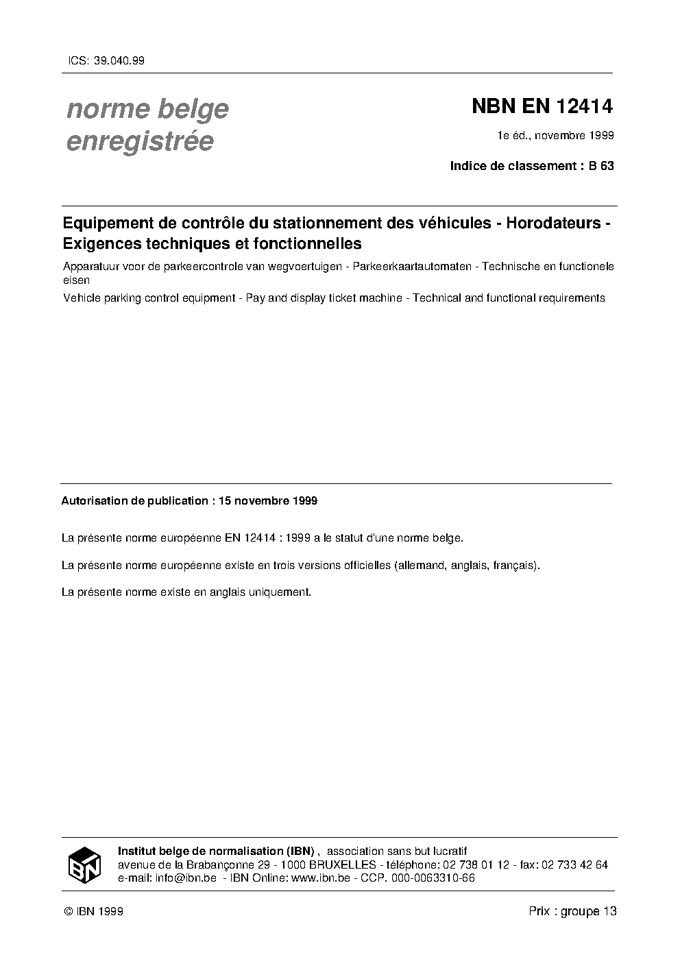 | Publisher | Bureau de Normalisation Belge (NBN) |