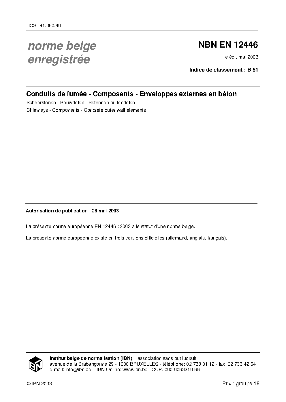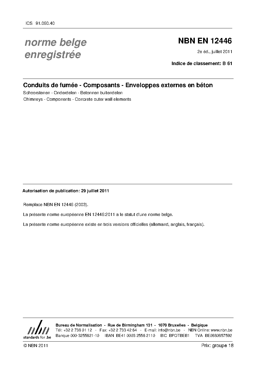 | Publisher | Bureau de Normalisation Belge (NBN) |