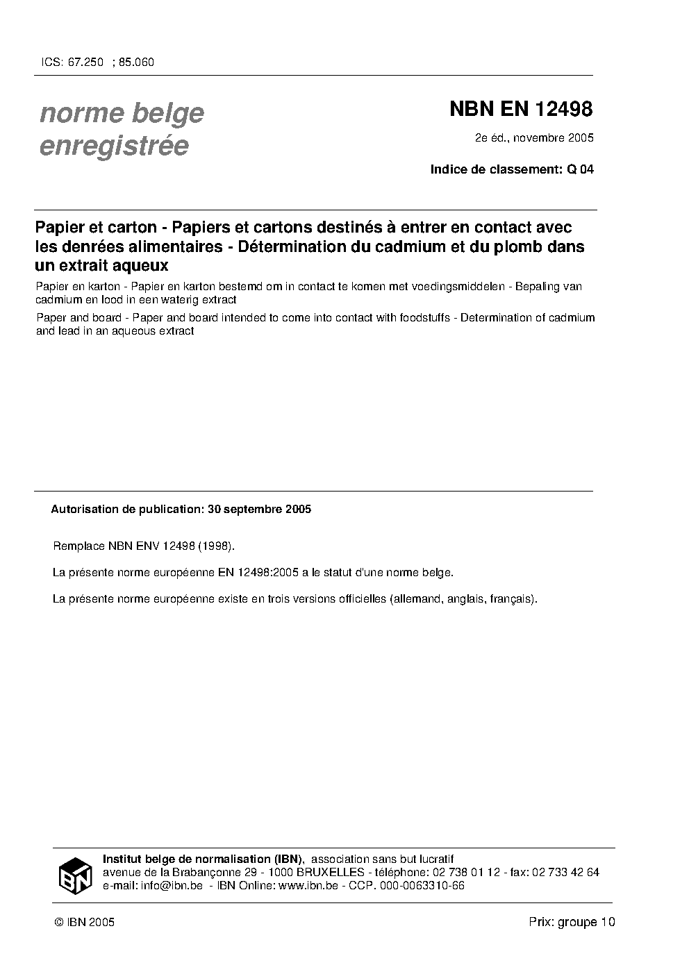 | Publisher | Bureau de Normalisation Belge (NBN) |