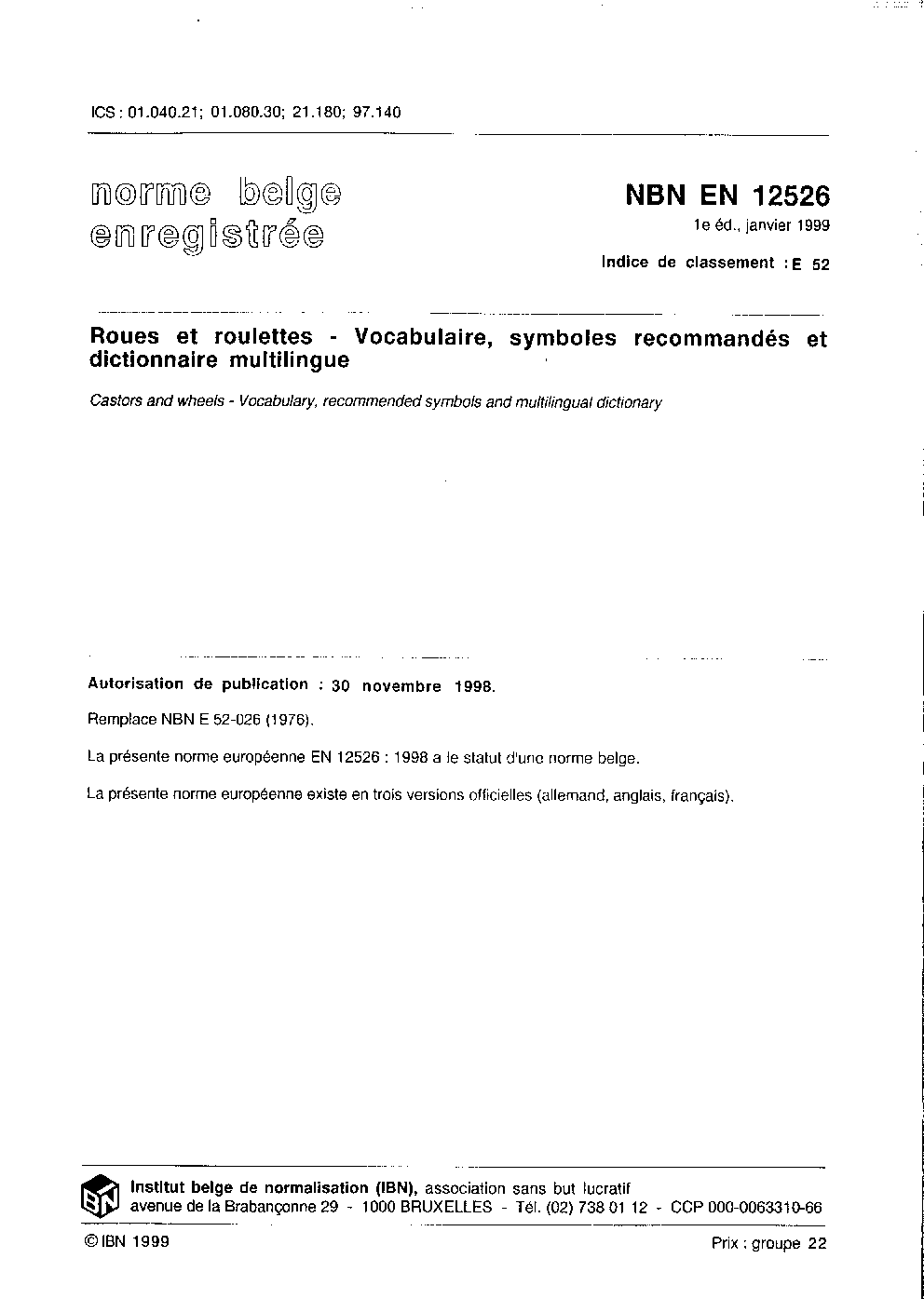 | Publisher | Bureau de Normalisation Belge (NBN) |