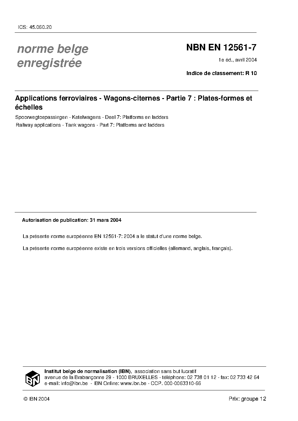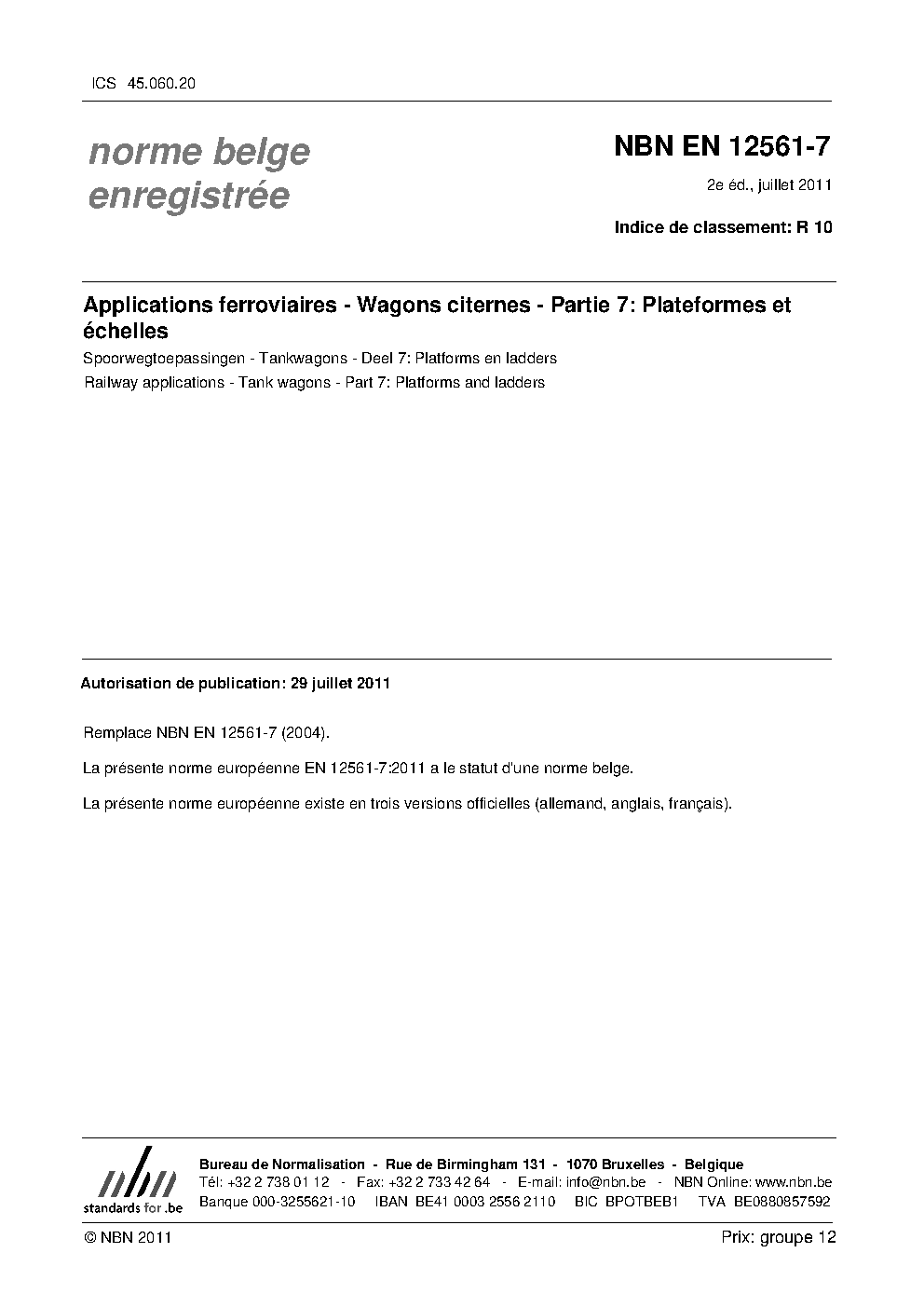 | Publisher | Bureau de Normalisation Belge (NBN) |