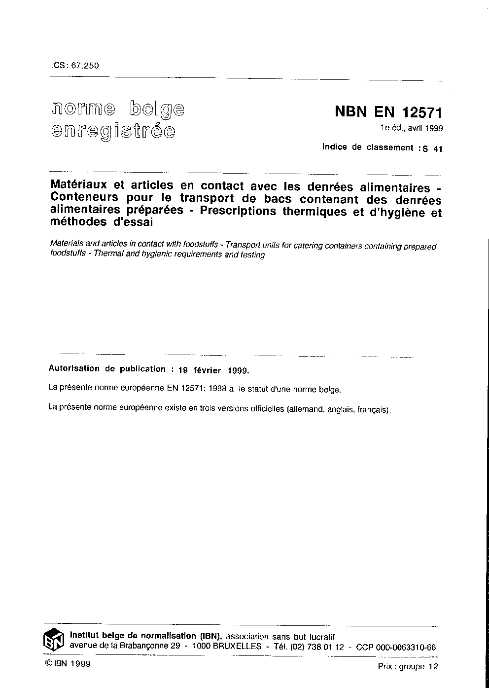 | Publisher | Bureau de Normalisation Belge (NBN) |