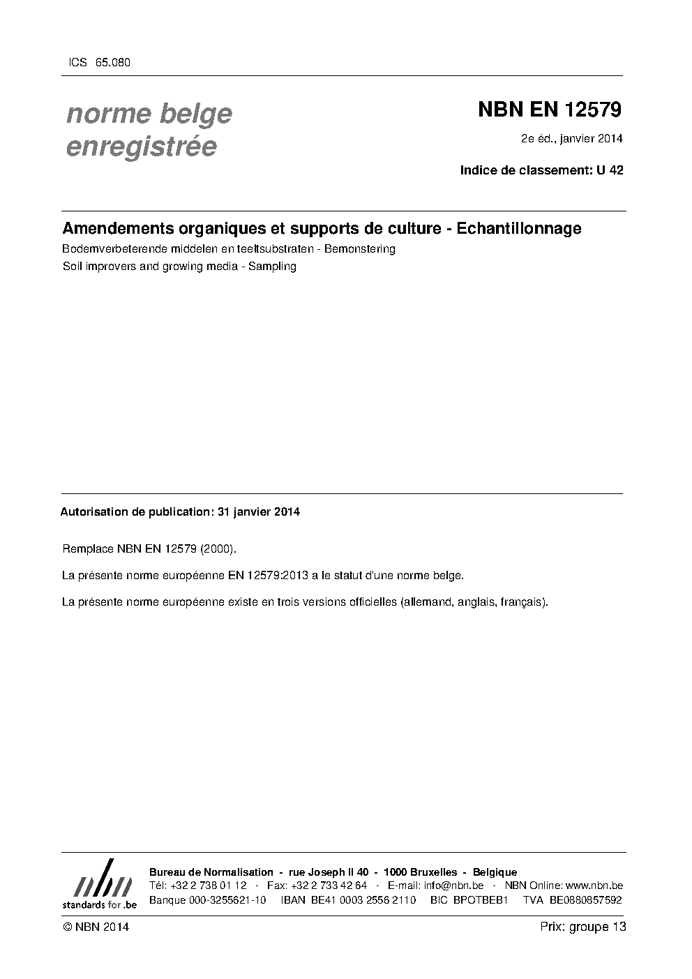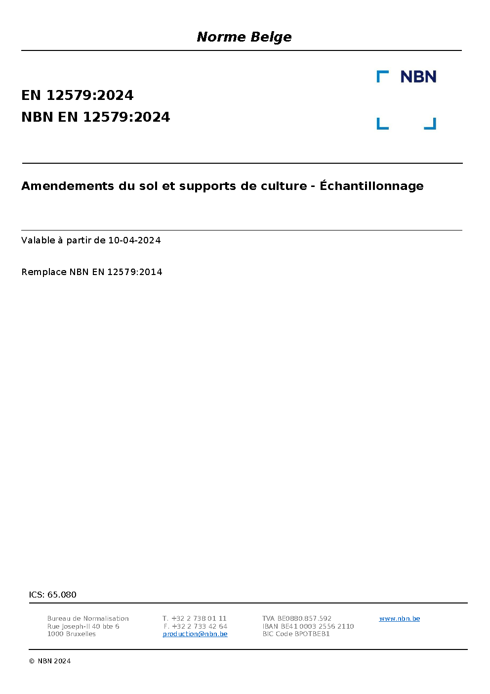| Publisher | Bureau de Normalisation Belge (NBN) |