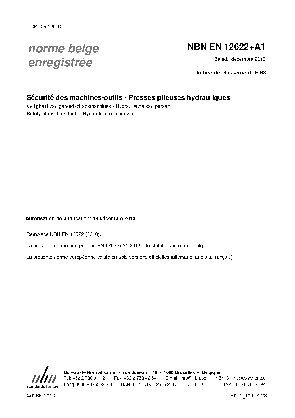 | Publisher | Bureau de Normalisation Belge (NBN) |