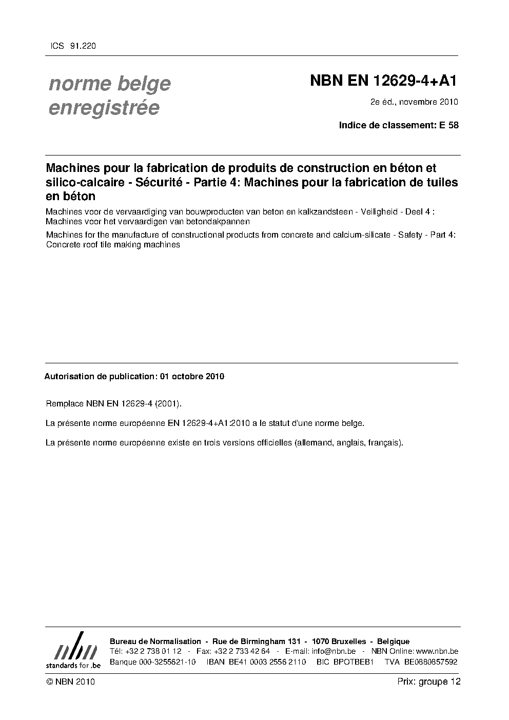 | Publisher | Bureau de Normalisation Belge (NBN) |