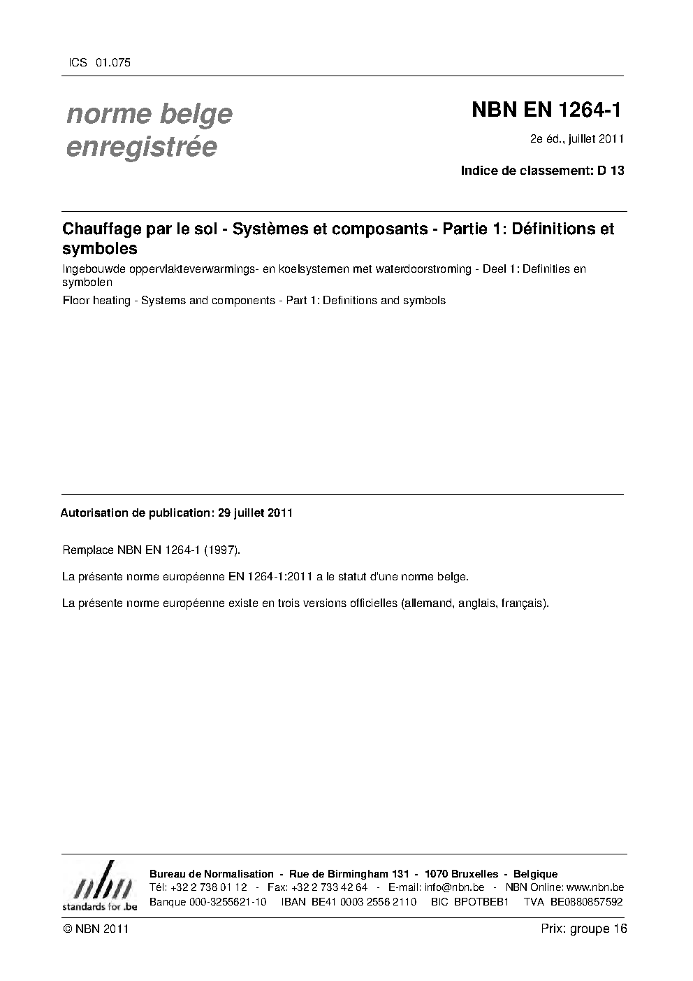 | Publisher | Bureau de Normalisation Belge (NBN) |