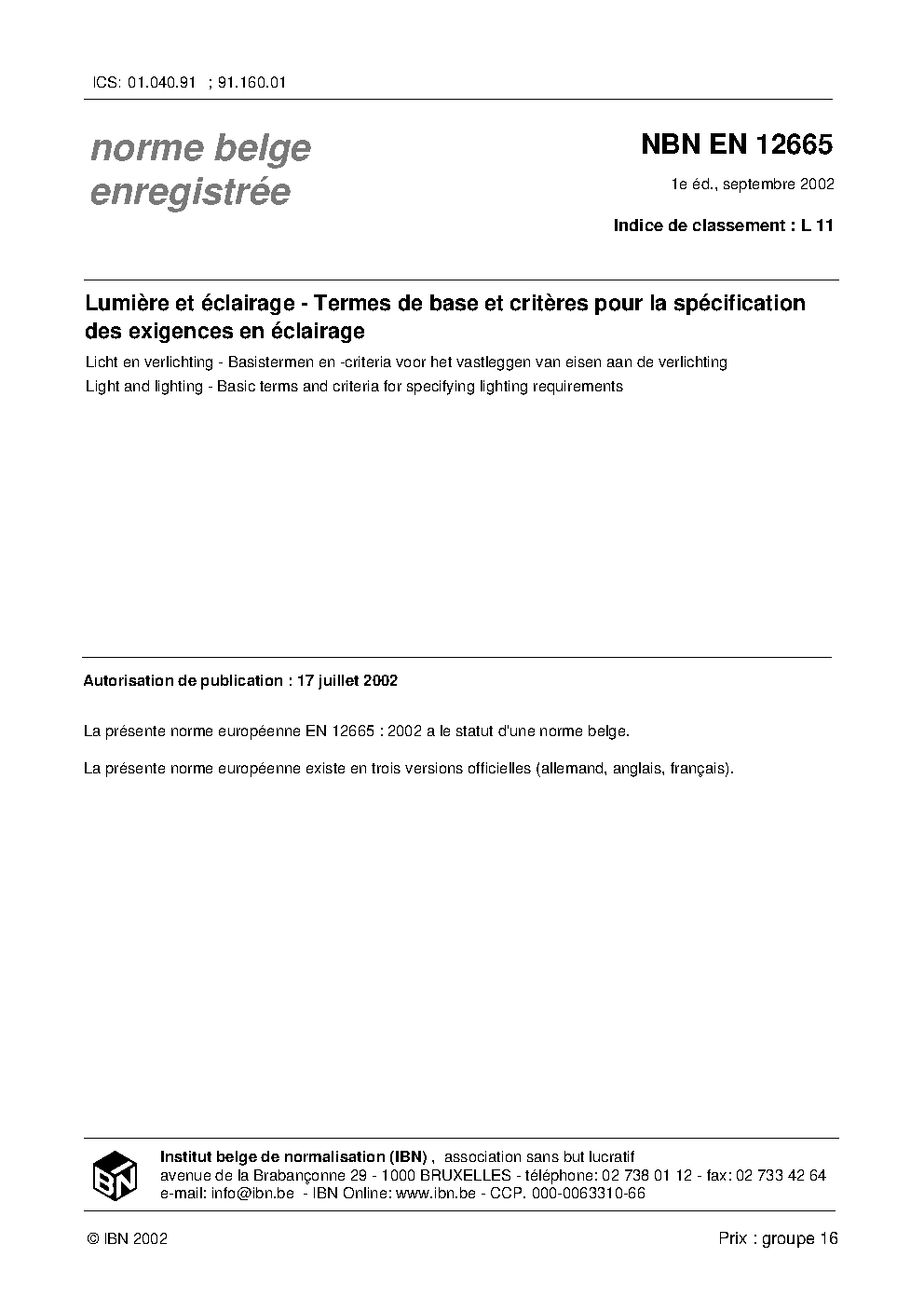| Publisher | Bureau de Normalisation Belge (NBN) |