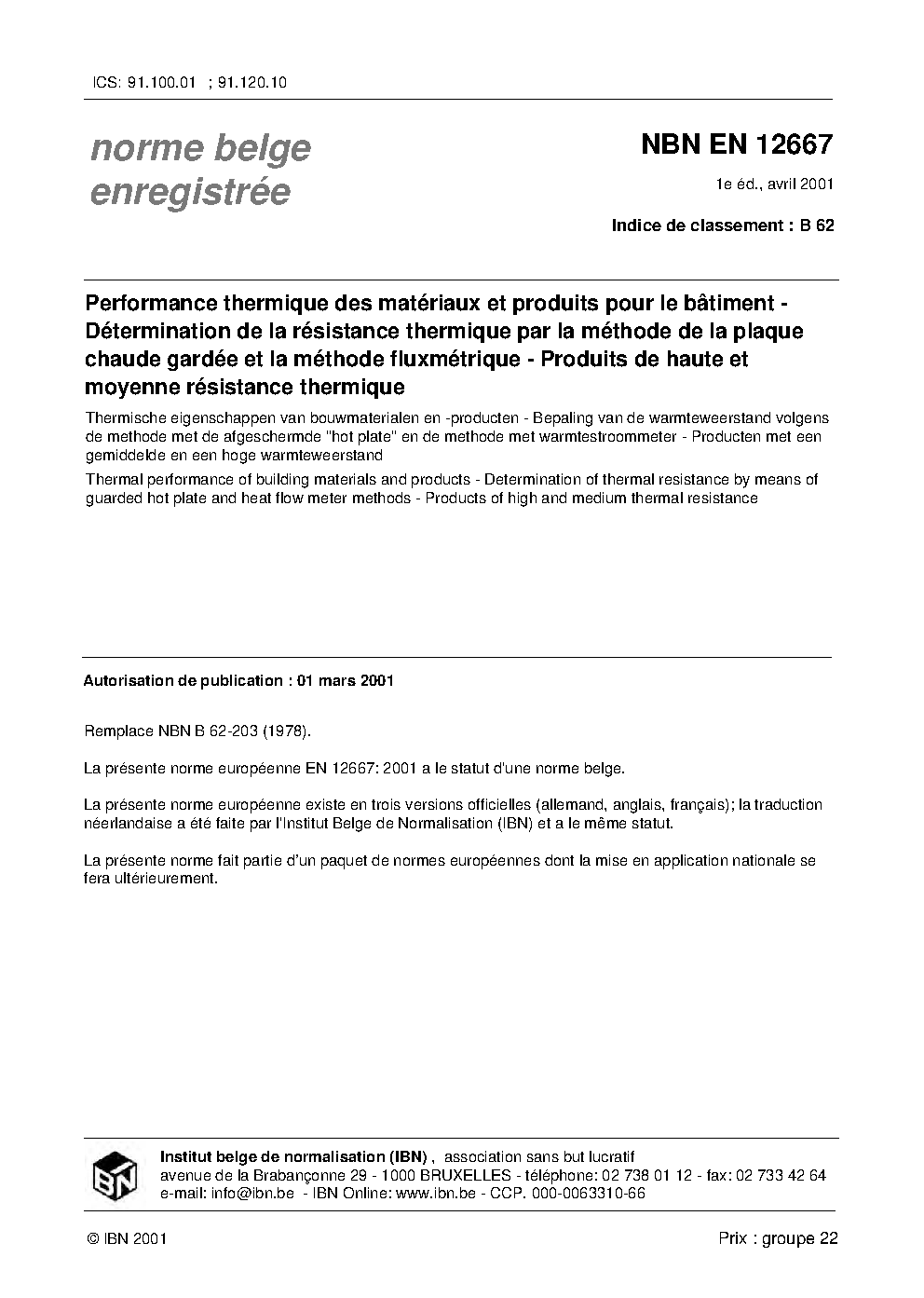 | Publisher | Bureau de Normalisation Belge (NBN) |