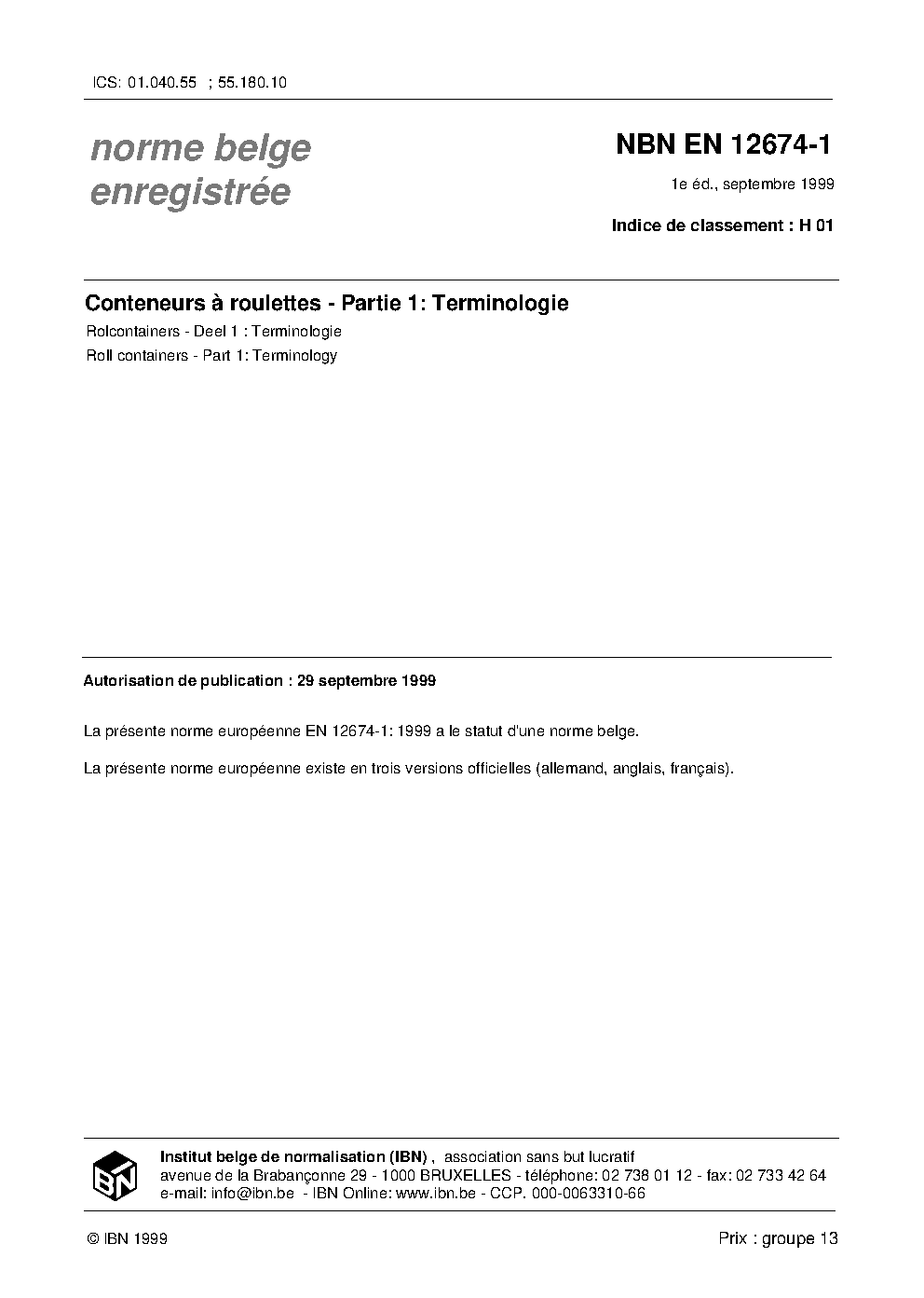 | Publisher | Bureau de Normalisation Belge (NBN) |