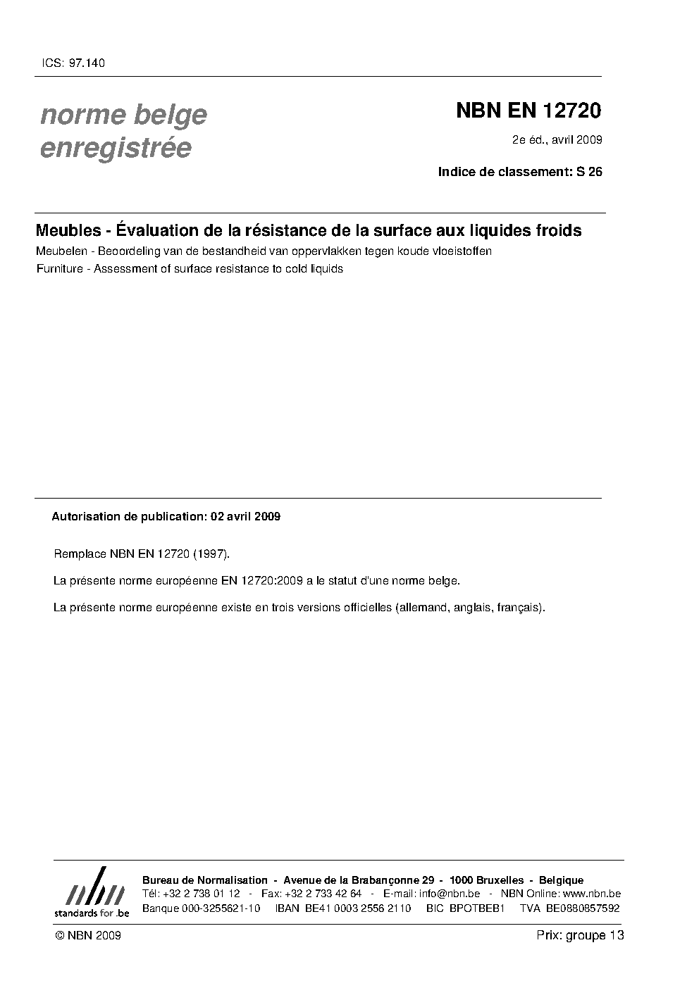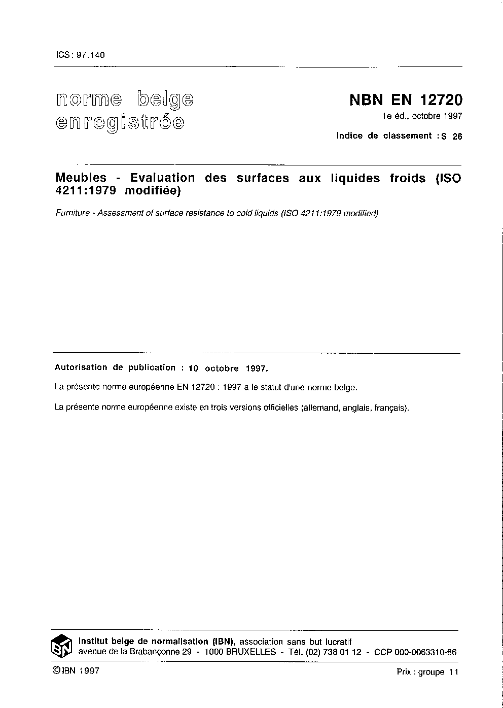 | Publisher | Bureau de Normalisation Belge (NBN) |
