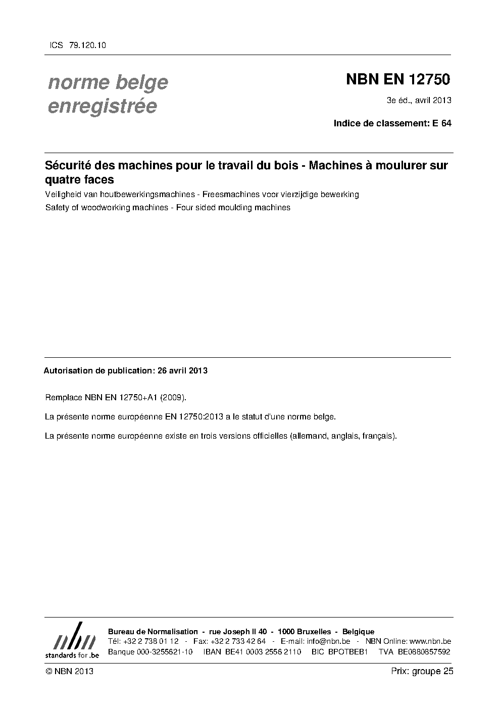 | Publisher | Bureau de Normalisation Belge (NBN) |