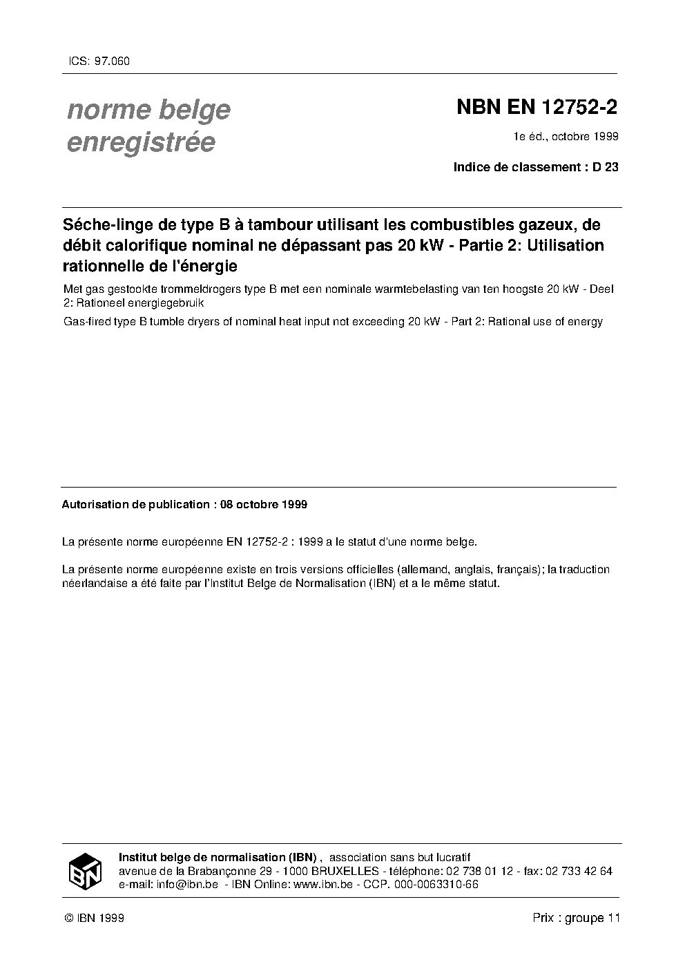 | Publisher | Bureau de Normalisation Belge (NBN) |