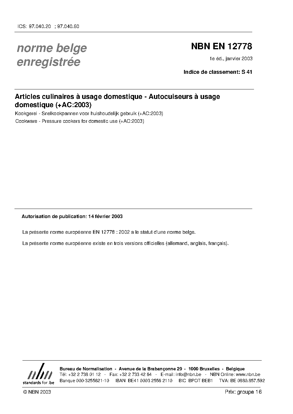 | Publisher | Bureau de Normalisation Belge (NBN) |