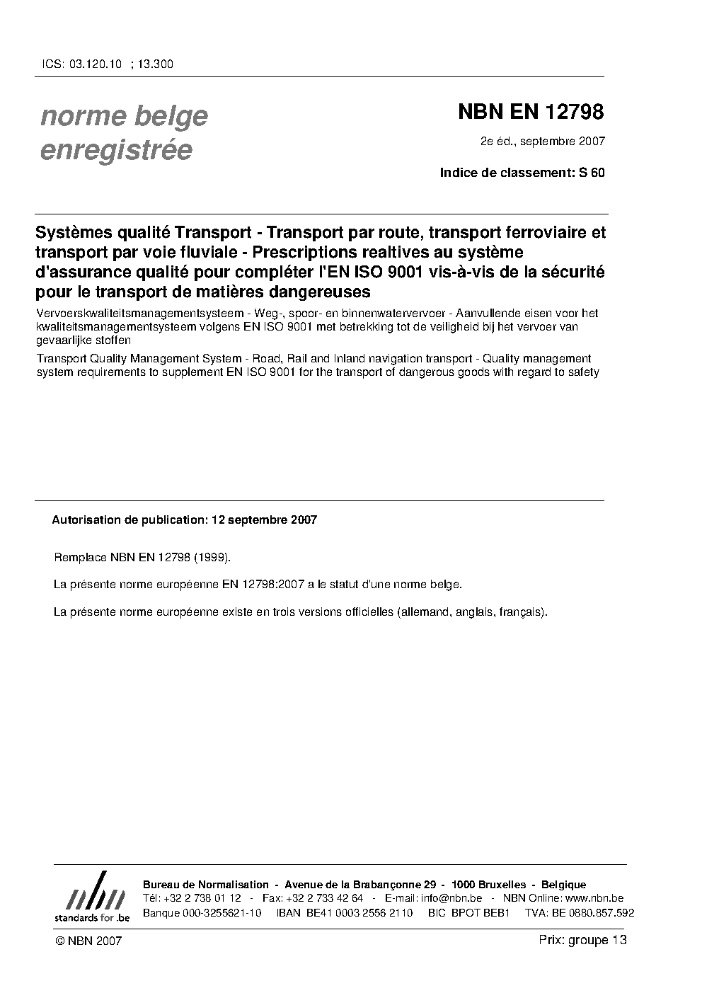 | Publisher | Bureau de Normalisation Belge (NBN) |