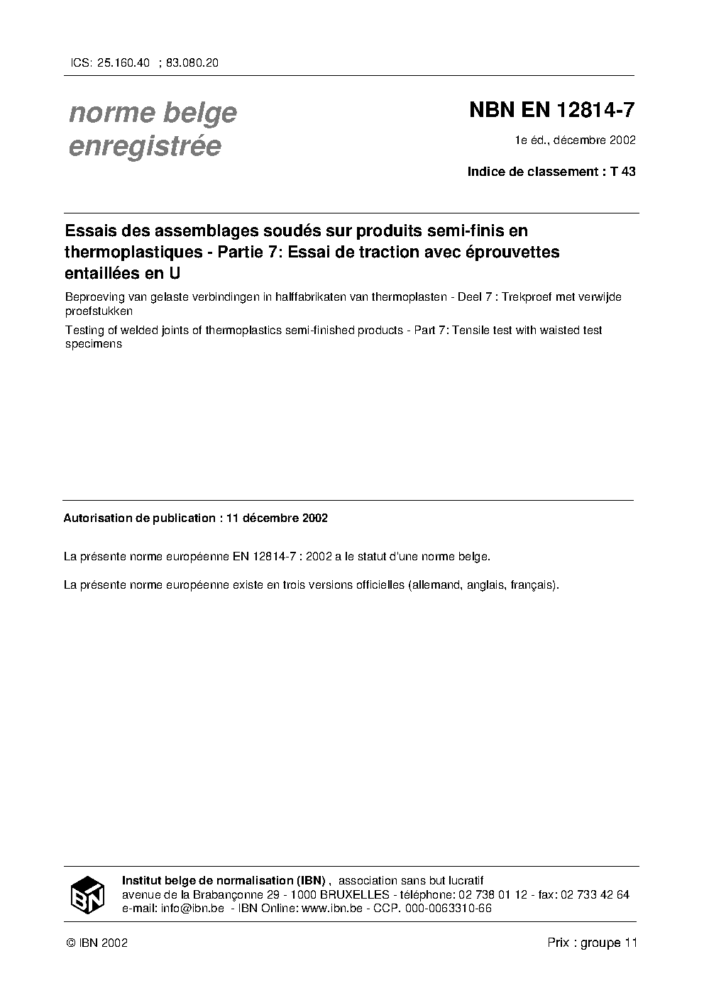 | Publisher | Bureau de Normalisation Belge (NBN) |