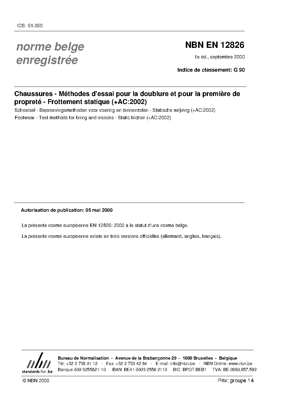 | Publisher | Bureau de Normalisation Belge (NBN) |