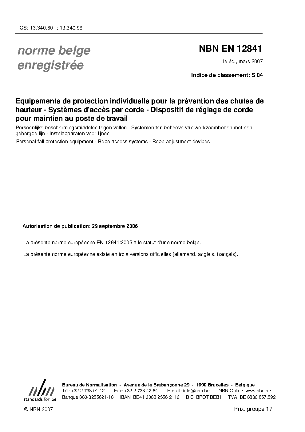 | Publisher | Bureau de Normalisation Belge (NBN) |