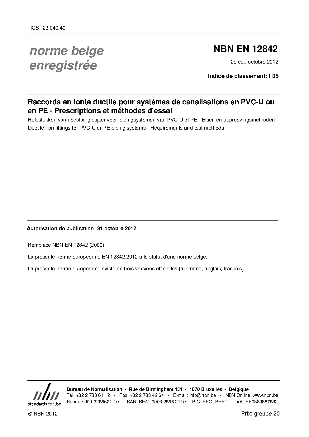 | Publisher | Bureau de Normalisation Belge (NBN) |