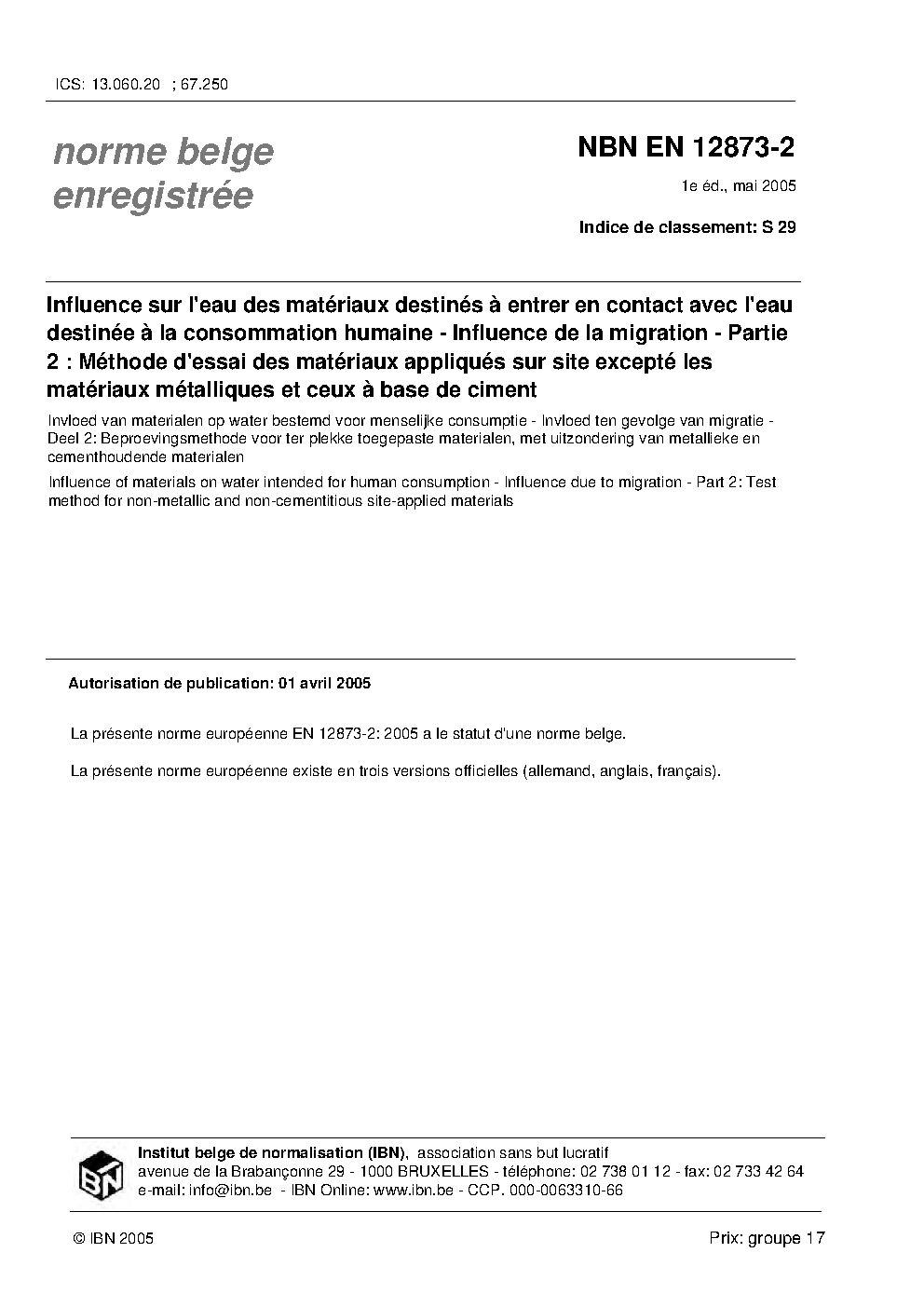 NBN EN 12873-2:2005