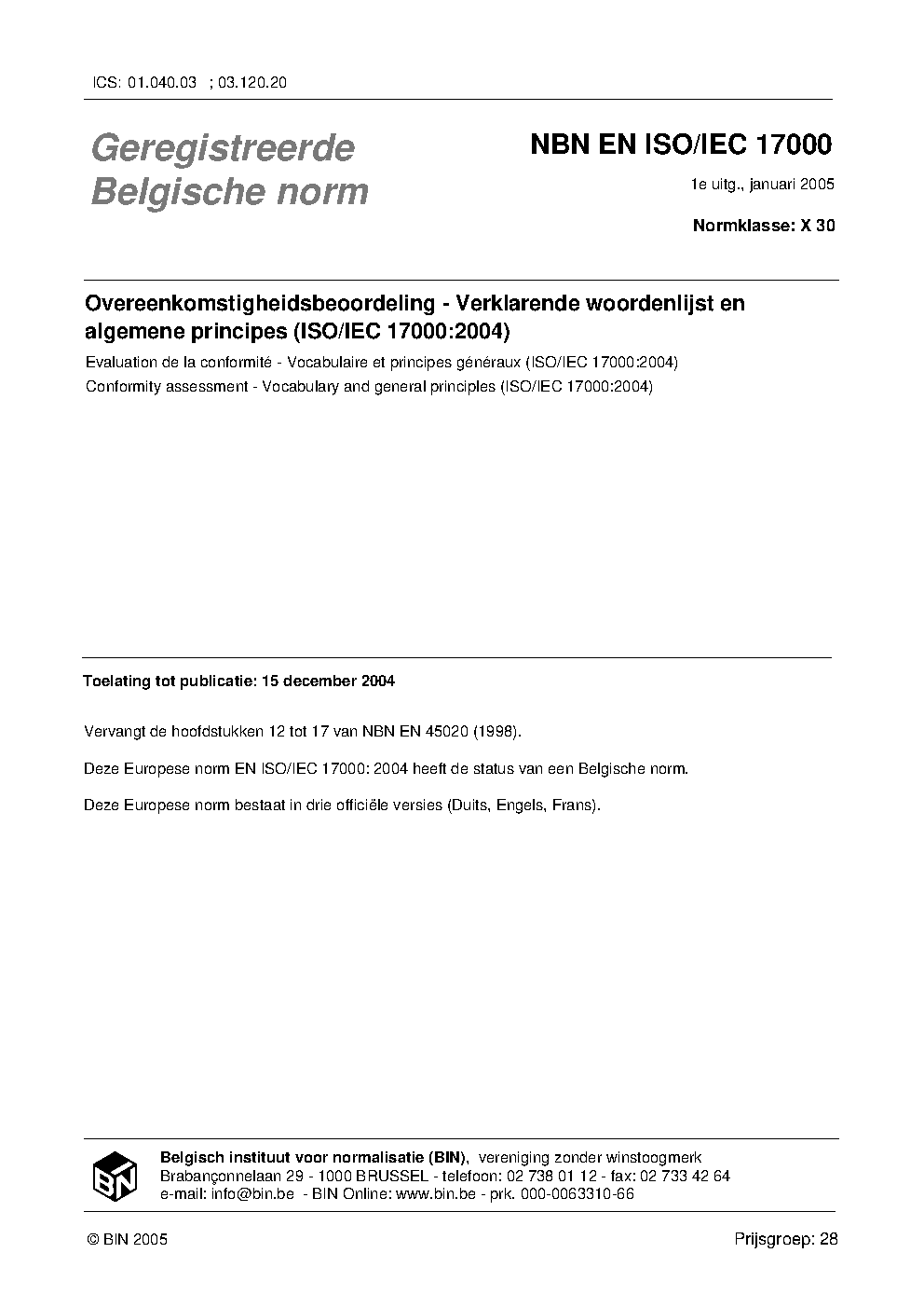 | Publisher | Bureau de Normalisation Belge (NBN) |