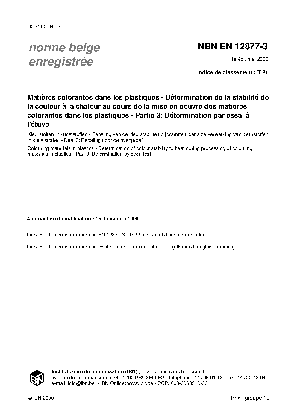 | Publisher | Bureau de Normalisation Belge (NBN) |