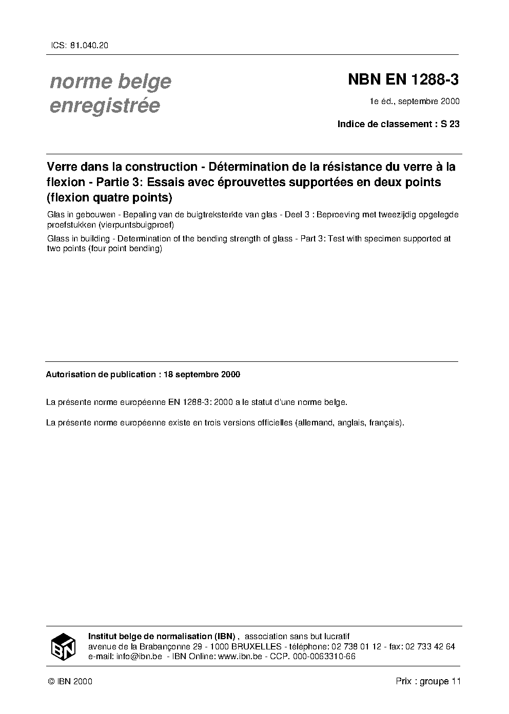 NBN EN 1288-3:2000