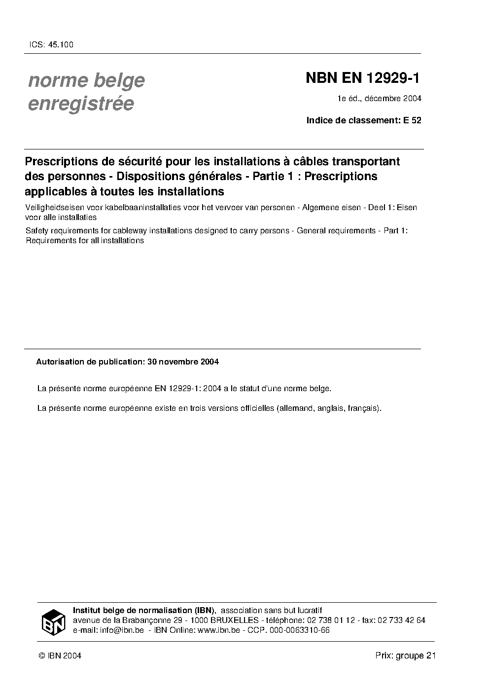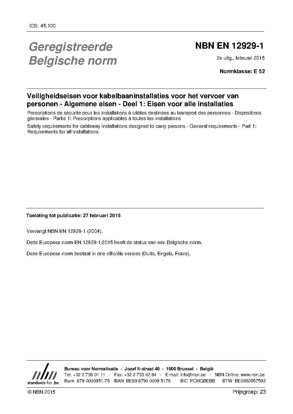 | Publisher | Bureau de Normalisation Belge (NBN) |