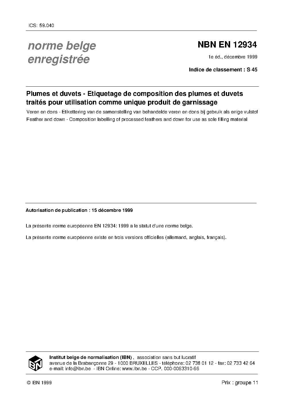 | Publisher | Bureau de Normalisation Belge (NBN) |